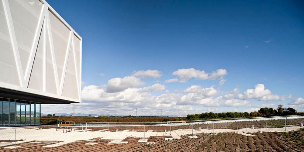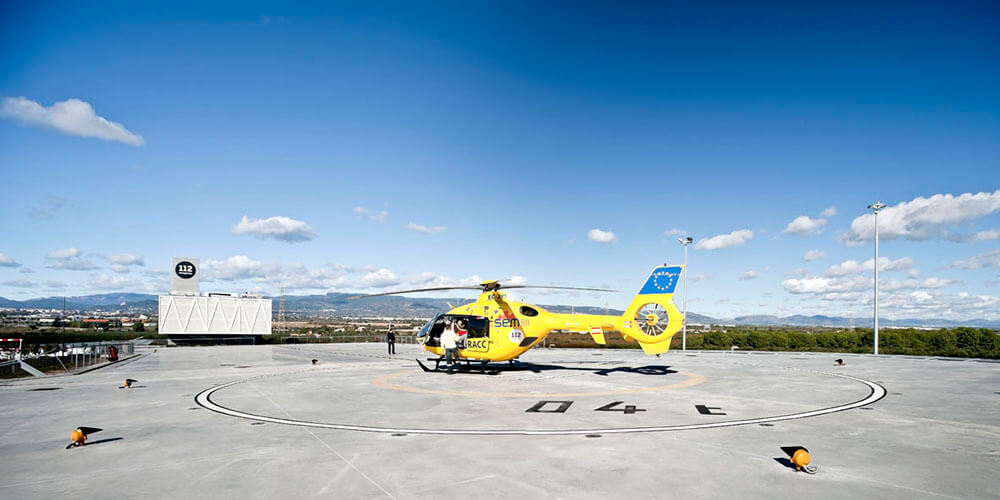 The complex is located in the Camp the Tarragona as a new infrastructure and architectonic reference, surrounded by many industrial and leisure facilities. The building follows a territorial scale, not an urban one. It stands on the outskirts of the municipalities of Reus and Tarragona, very near the junction between two very important motorways. The plot is still surrounded by orchards. Its positioning in the long and steep plot was carried out following safety criteria and terracing the main functional elements: the heliport, the parking lot, the plinth and the operative box.