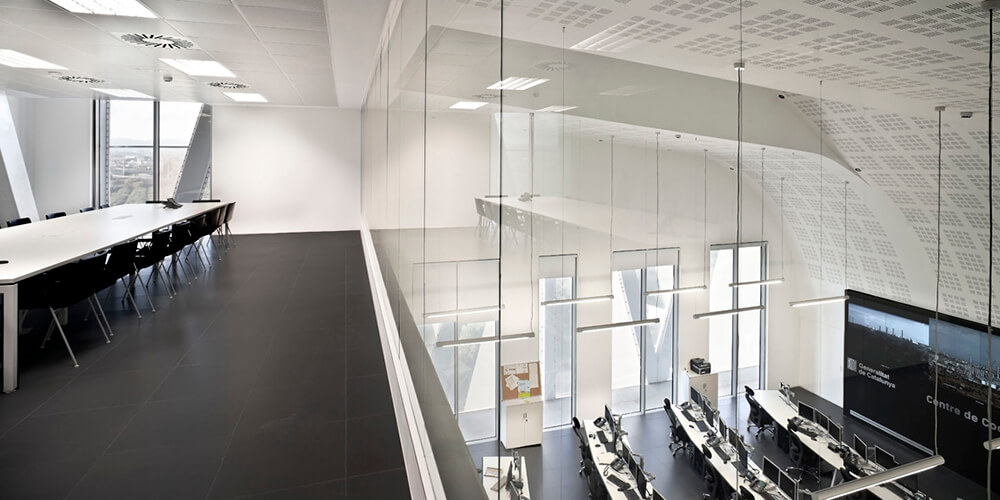 The metal structure, apart from solving the functional needs of the operational rooms, also allows flexibility to be incorporated for future floor distributions and promotes an image of unity of the operational bodies integrated in the new emergencies management model, through its solidity and its white colour, neutral to the uniforms of the operational bodies.