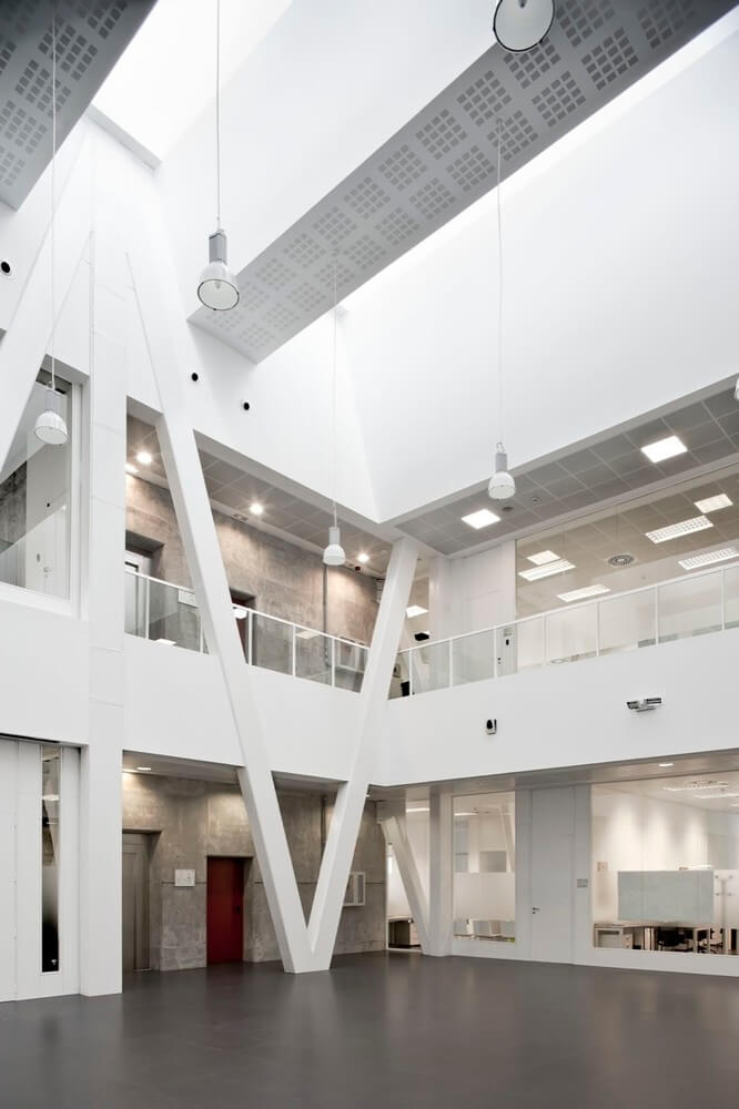 To boost the coordination and the synergies amongst the operators, the operations rooms are arranged around a large space that also allows natural diffuse sunlight to the inside of the operational box.