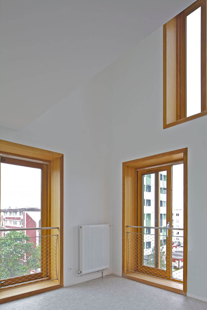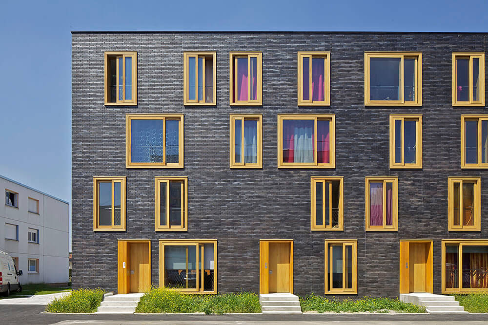 The project is situated in Béthune, in the North of France, in a district registered on the program of the National Agency for the Urban Renovation. This project groups together 23 ‘semi-collective’ social housing units. The inspiration for the design came from research into new qualities developed at the interface between the individual and the collective: a sustainable lifestyle combined with the advantages of individual housing. We tried to create a unique building with very different typologies: individual housing with garden, penthouse duplex with shared terrace, apartment with garden on the ground floor and panoramic dwellings, ranging from the simplex to the triplex, with terraces offering views of the Belfry of Béthune and over coal tips to the Horizon.