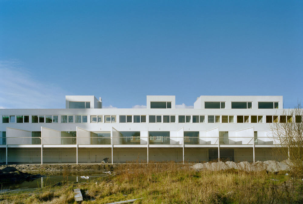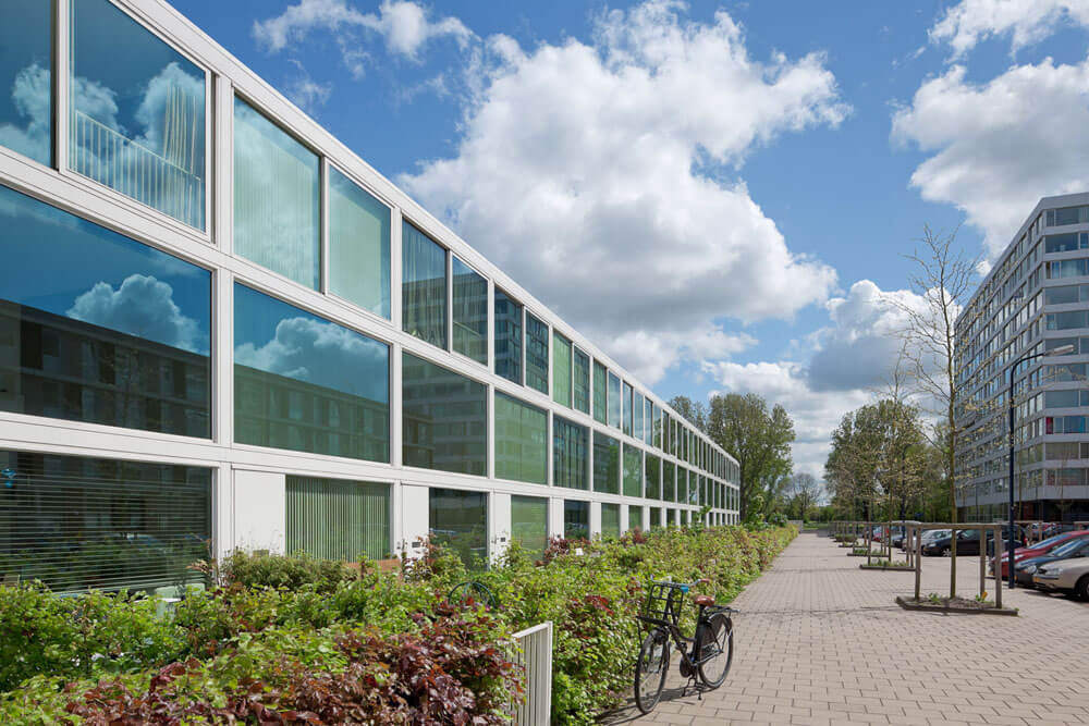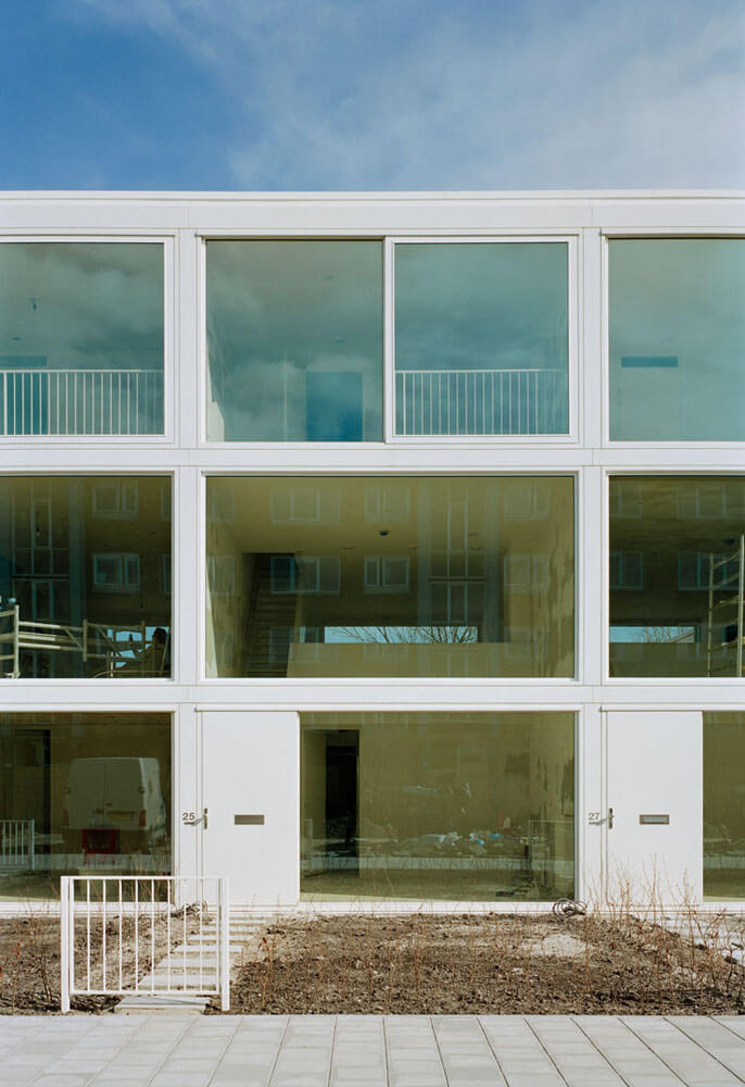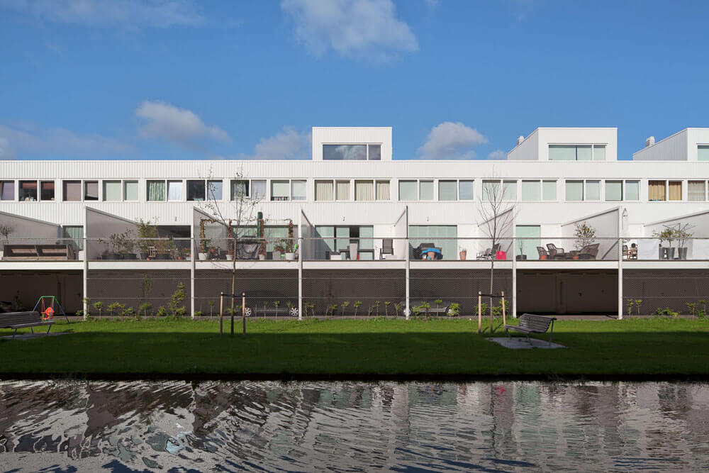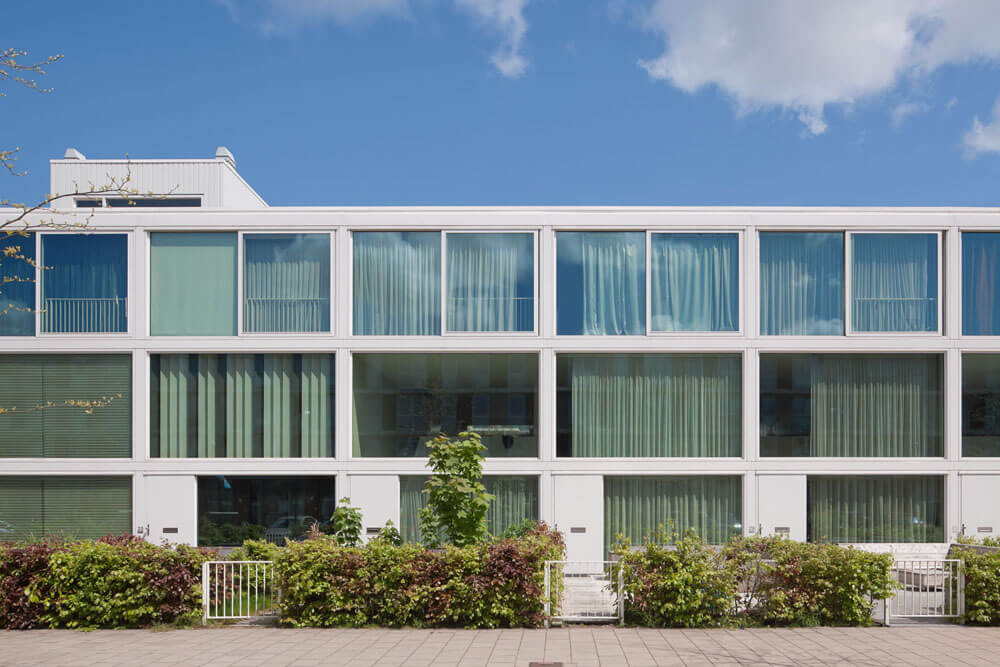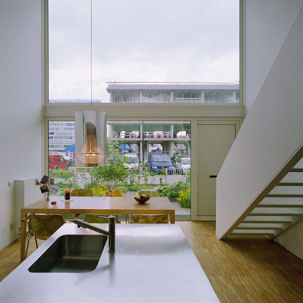 The building project takes the very relaxed urban setting as direct starting point for the organisation of the houses and tries to find a convincing solution for the parking. The result is a prototypical housing project that supports the more collective scale of Amsterdam Osdorp without suppressing the individual expression of the single homes. Traditional values of modernism get a new interpretation and more contemporary forms of living are stimulated.