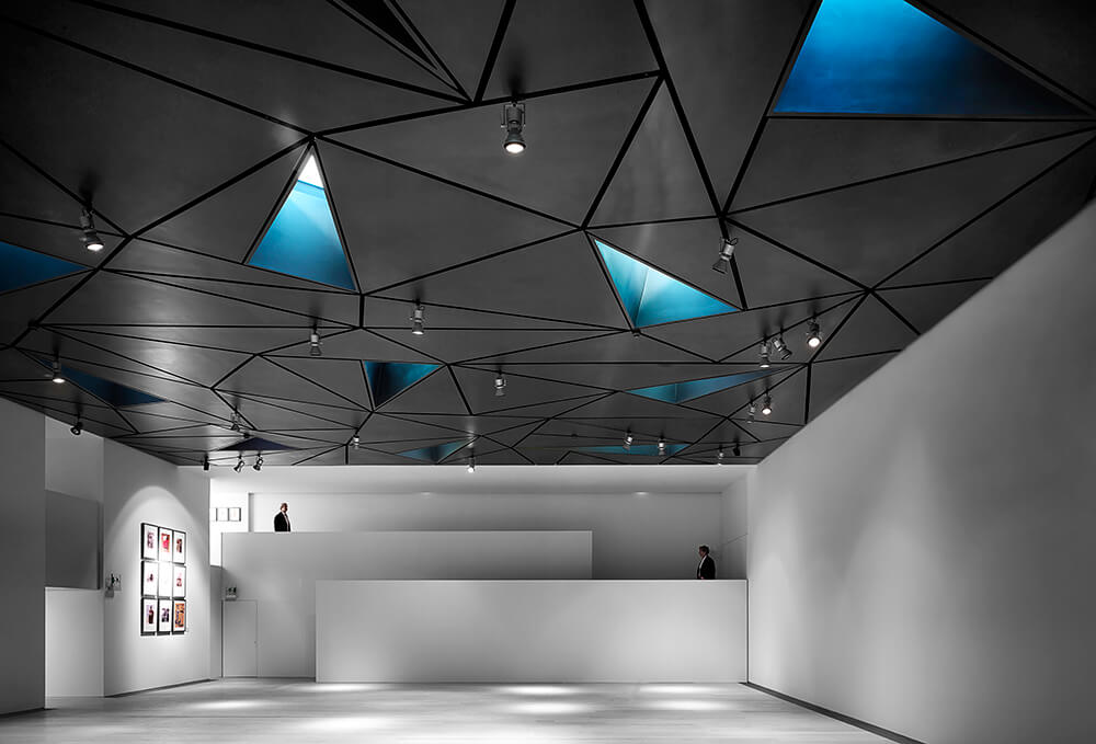 Both planes will be built with the same material, blue annealed steel in a matt grey shade, and both presenting similar triangular gaps, supplying the light inside the spaces served by these.