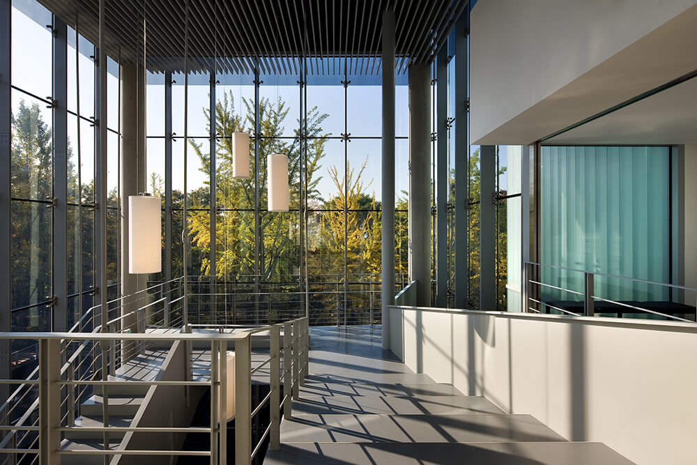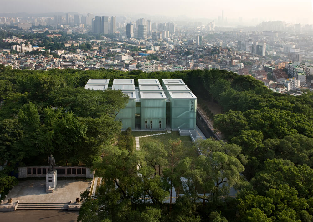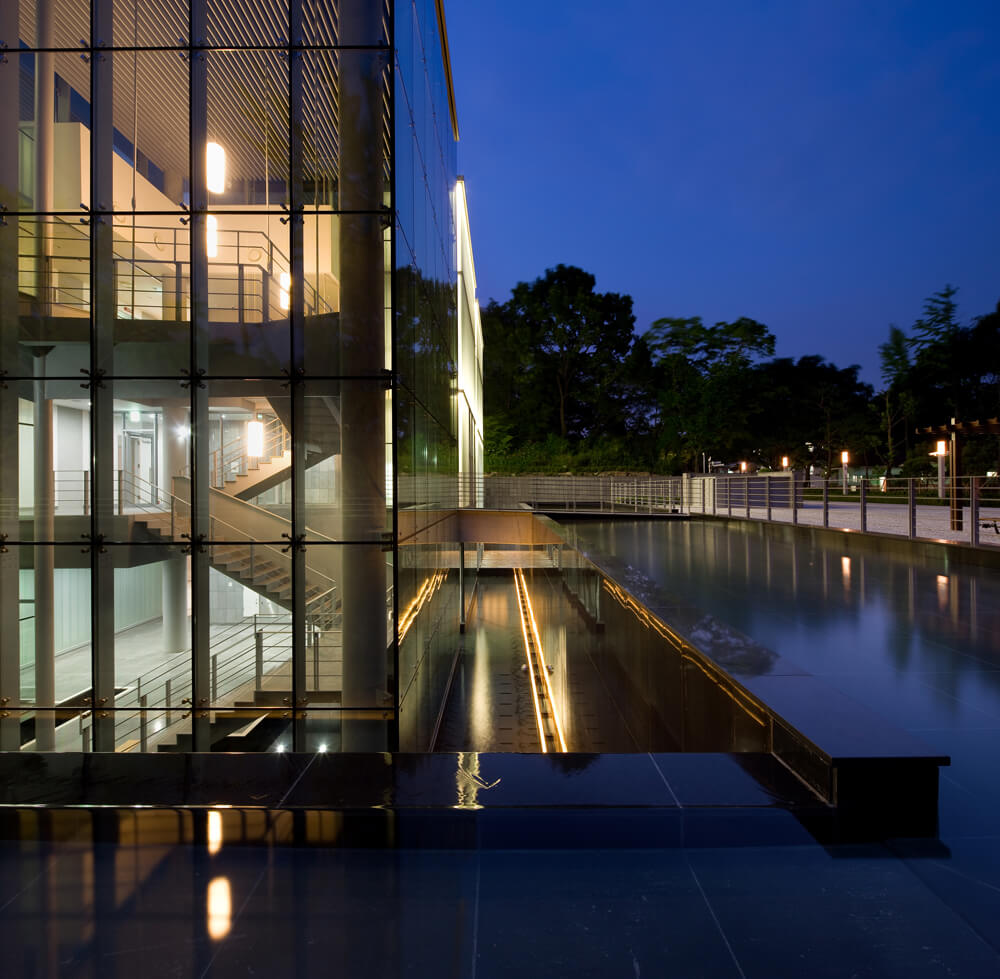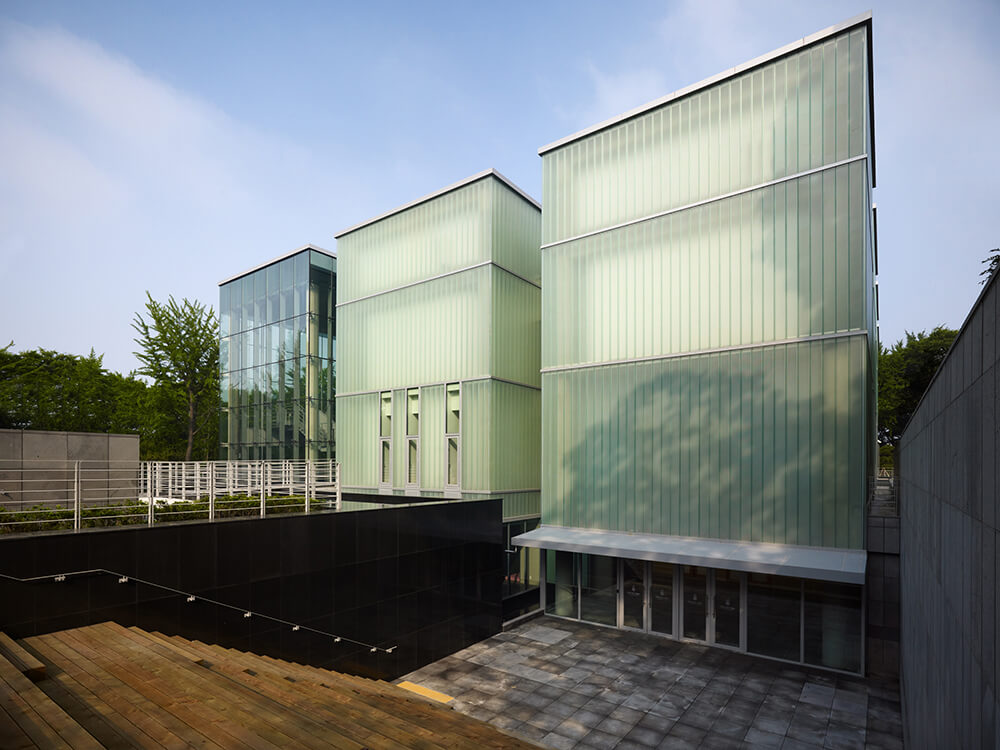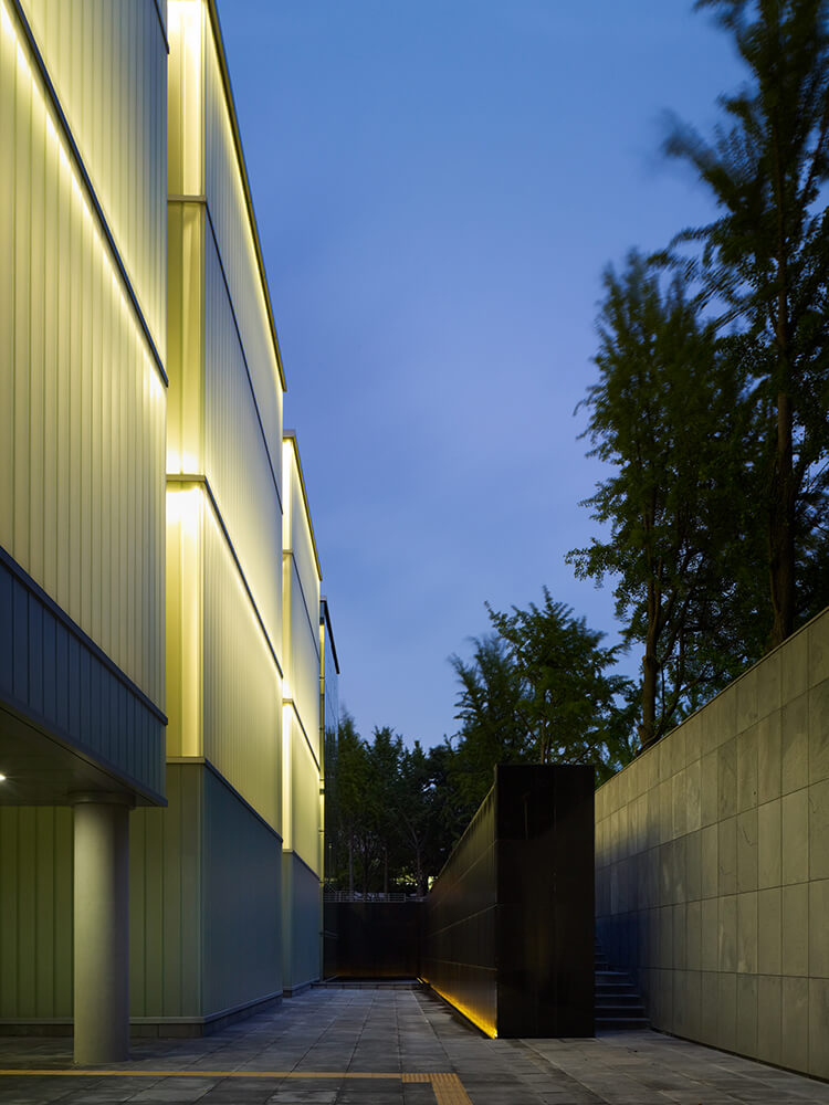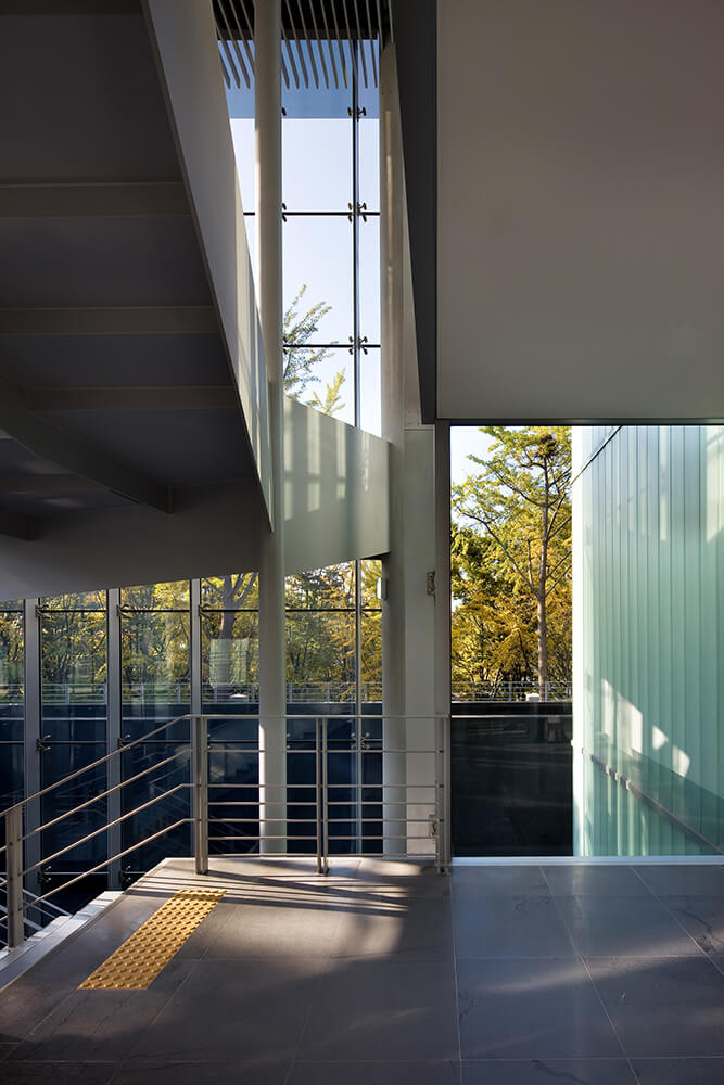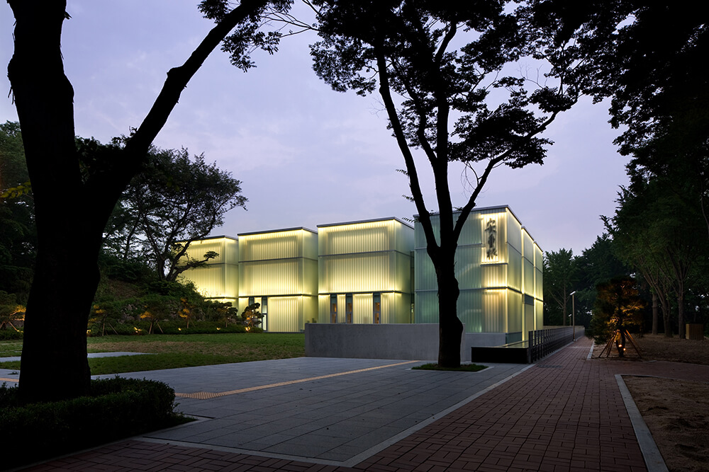 The building creates bright, diverse spaces inside the 12 luminous “boxes.” The translucent outer layer enables the scenery lighting to come from the building itself and helps maintain the symbolic significance of the commemorative hall. After viewing the final exhibition room, visitors are led to the exterior of the building through the southern staircase, which provides a fine view of the Han River.