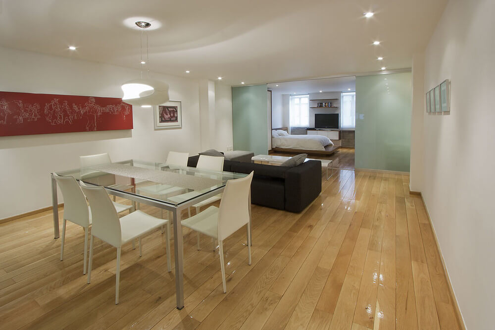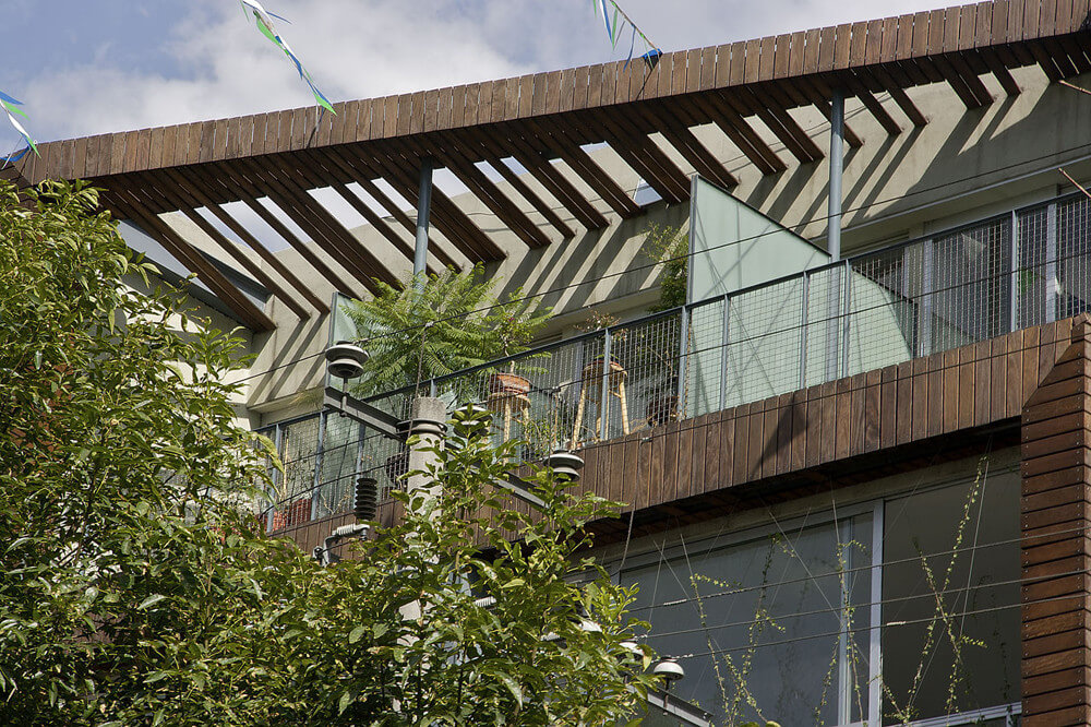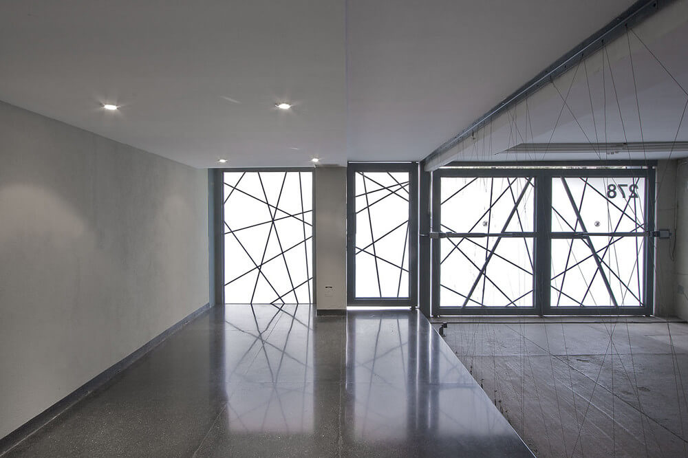 The building is a set of 9 residential units, in 1 and 2 levels. There are 3 different typologies. The main facade is composed by a plan of tensions where a vertical nature grows that makes a filter and buffer between the street and the interiors. A wood frame crosses the facade and ends in the private terraces transforming itself into lattice window.