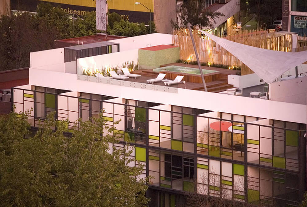 Located in the Hipodromo neighborhood, the project is formed by 26 residential units in 9 different typologies, distributed in 6 levels and one of terrace in roof; a tree is suspended in the central courtyard. This gesture retakes the scheme of the old Mexican neighborhood. The modulation in the main facade is different and unique in each space and this inspired by the Art Deco windows, and the color of the foliage of the zone.
