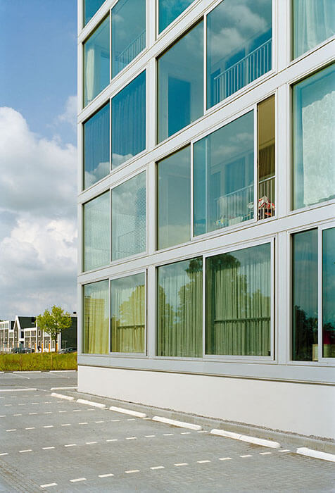 As a whole, a very delicate visual balance is achieved. The functional grid of the windows and the underlying construction form a rigid architectural order, which is counterbalanced by a spontaneous collage of colourful apartment interiors. In a display of the complexities of city life a vital and optimistic image emerges, striking up intensive communication with the neighbourhood. This image is collective as well as individual, for it is – consciously or unconsciously – formed with the active participation of every inhabitant. The ‘building in use’ therefore essentially becomes the facade.