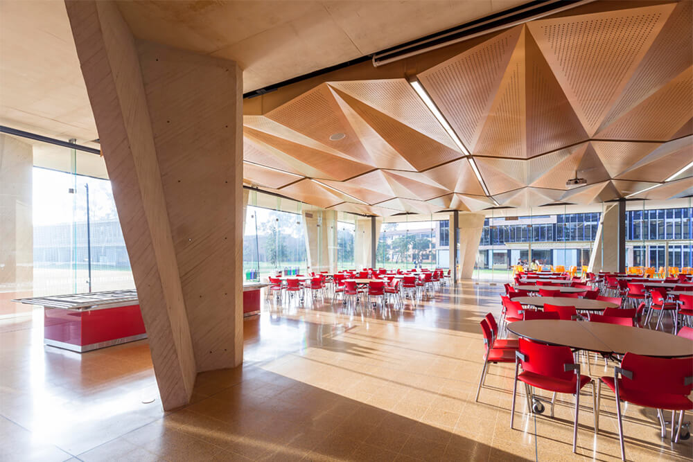 The basic program housed at the “Auditeria” gets divided into two independent and autonomous areas; the kitchen and the main room, allowing it to be used as an auditorium or a cafeteria. This separation signified the creation of a multipurpose large format space for the school.