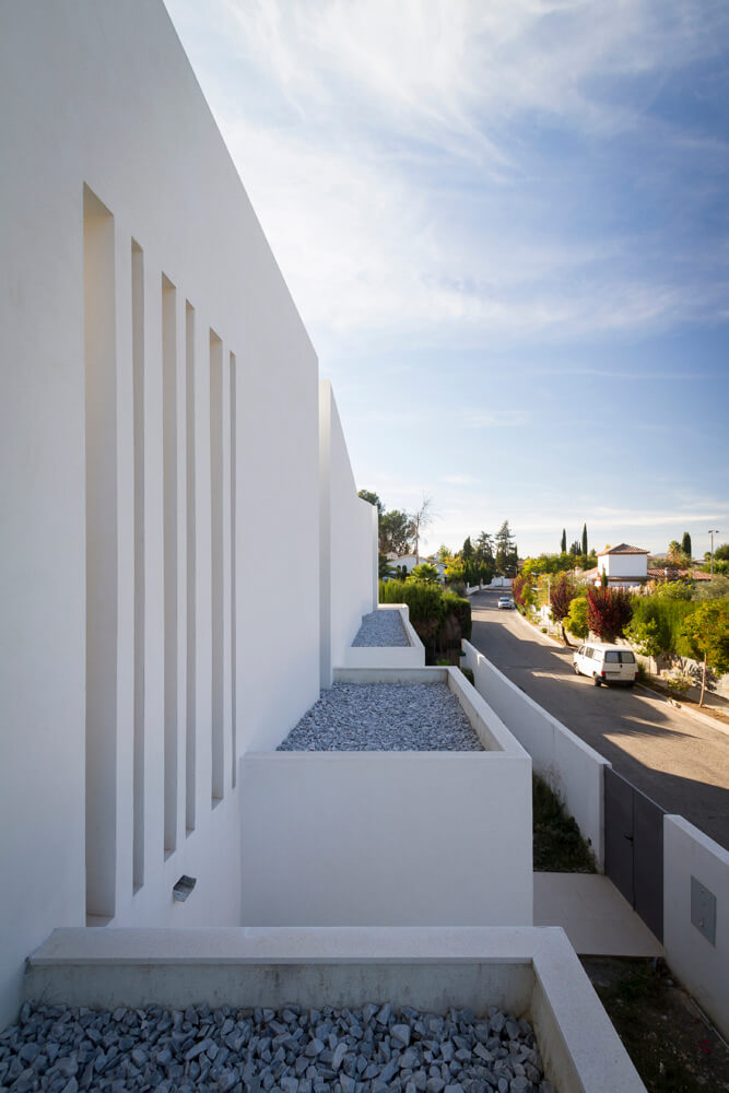 The owners like arrange meetings, parties and other events with friends and family, so the house is arranged on two levels, the main one, an almost unique space and very open to the outside, and the upper level, more exclusive and intimate, enhancing the value on the communication between them along the shared common volume. Both levels have a distinct compositional response in the elevations, the upper level as a broken but continuous body, leaning on the lower boxes that respond to the different uses of the main level. This lower level is composed by those containers each housing a different use, separated by axis of physical and visual communication between the two strips of ground.