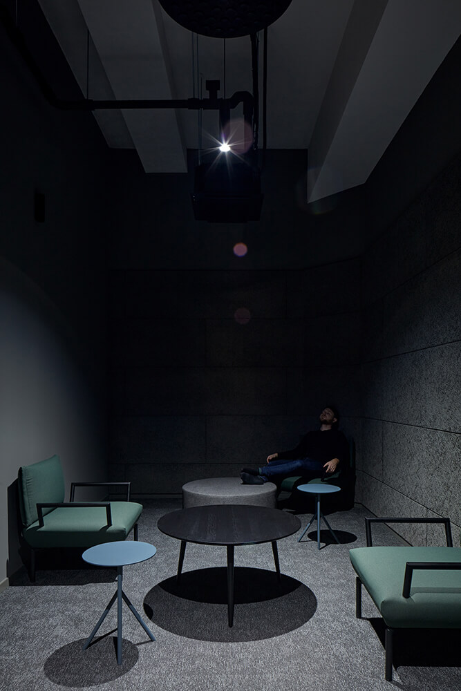 The meeting rooms and separate offices place emphasis on acoustics, which is provided not only by the carpets but also by the wall coverings. In line with their style, the architects used recycled and natural materials. The environmentally friendly Re:felt panels are made from recycled PET bottles. The boutique mood of the entire interior is enhanced by the roof terrace with an adjacent bar. The architects used the building’s complex structure to the clients’ advantage, creating comfort zones in several places. The flexibility of the space is appreciated not only by the developer, but also by the first tenants.