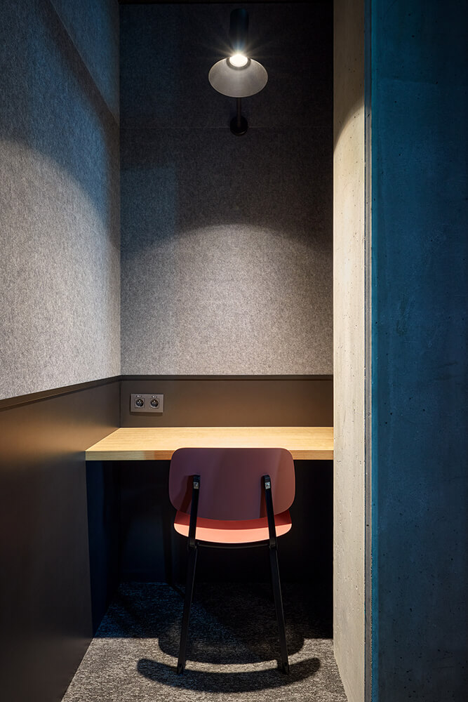 In total, there are 3,900 square metres of flexible working space with a capacity of approximately 450 places in the heating plant. The architects worked with the same typology of workplaces as in the Prague coworking branch mentioned above. They brought a concept of high-quality workspace that reflects the authenticity of the environment.