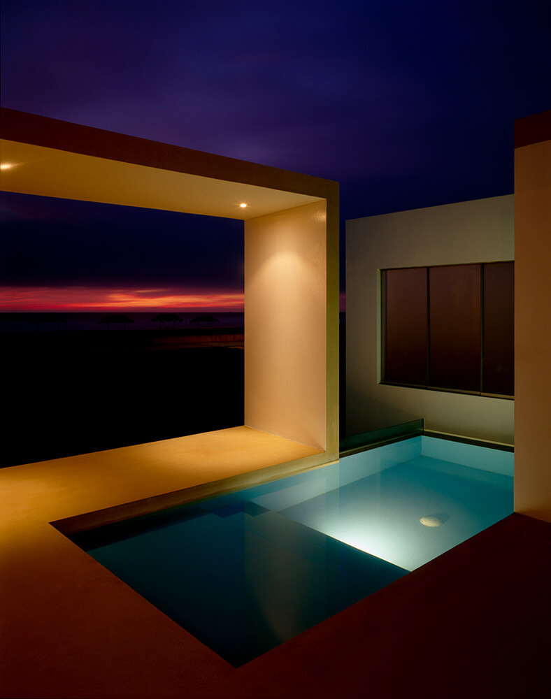 Functionally, the main volume is surrounded by sleeping and service areas. There the kitchen and master bedroom can be found, which are both visually connected with the terrace and pool, and through them, with the skyline.