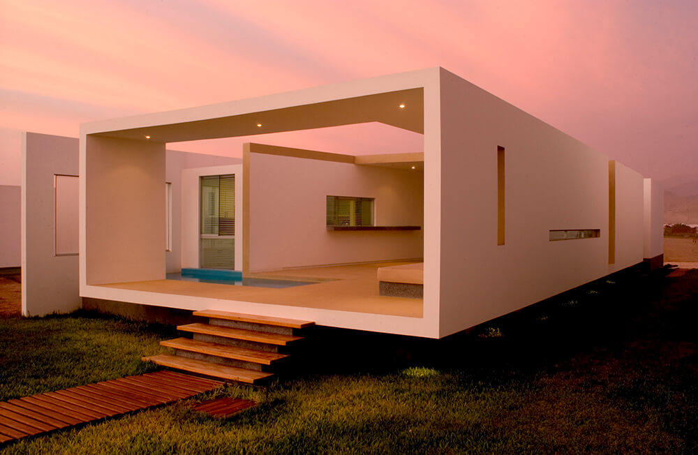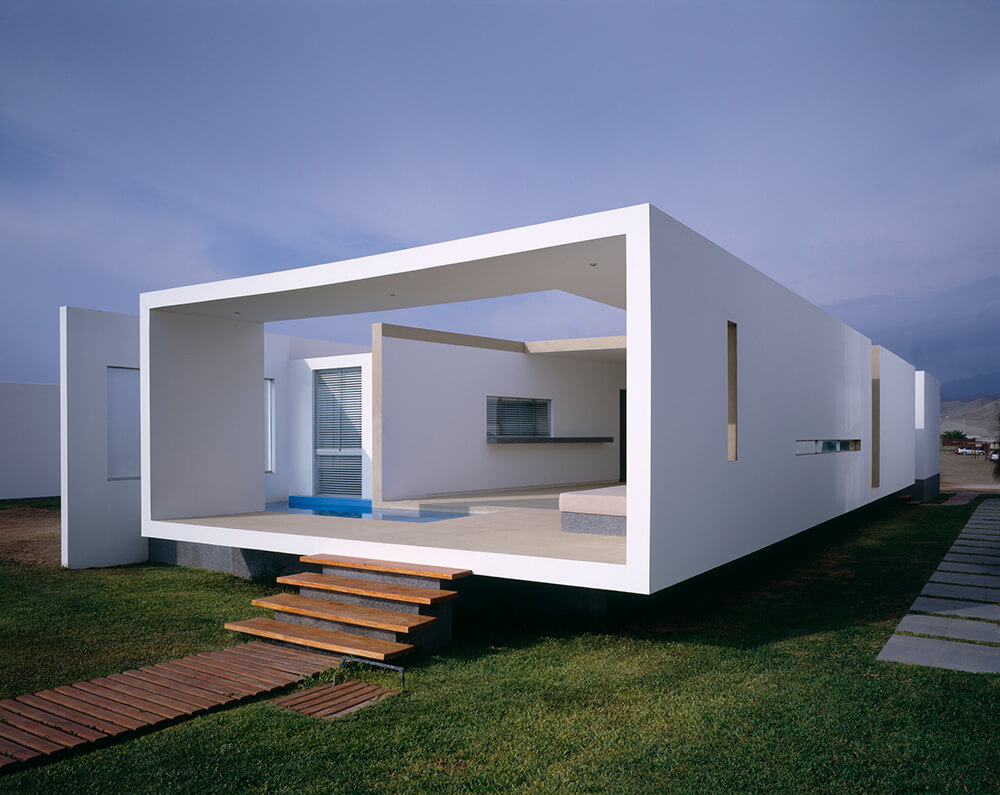 The project consists of a small house on a beach a hundred miles south of Lima and explores the expansion of the conventional uses of a beach house.