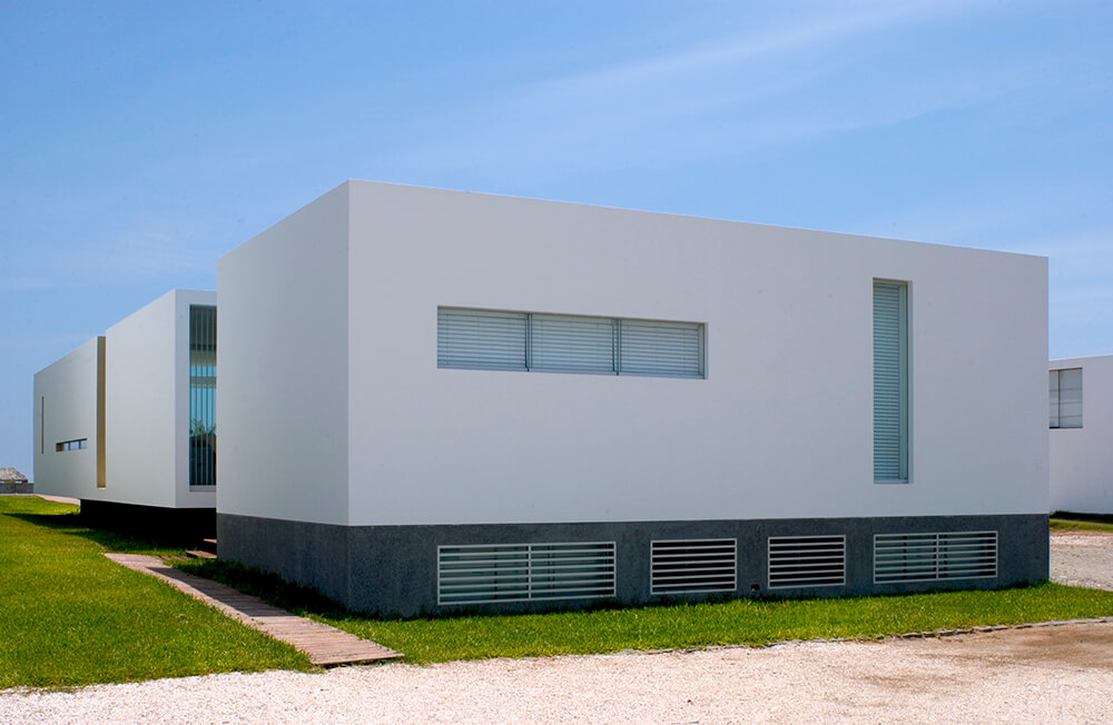 Architecturally, the volume has been strategically perforated along some planes in order to control sunlight and to achieve a selective visual approach (towards the sky, the sea, etc.), and it has been deliberately suspended above the garden to add an air of weightlessness and freedom to the architectural experience of the users.