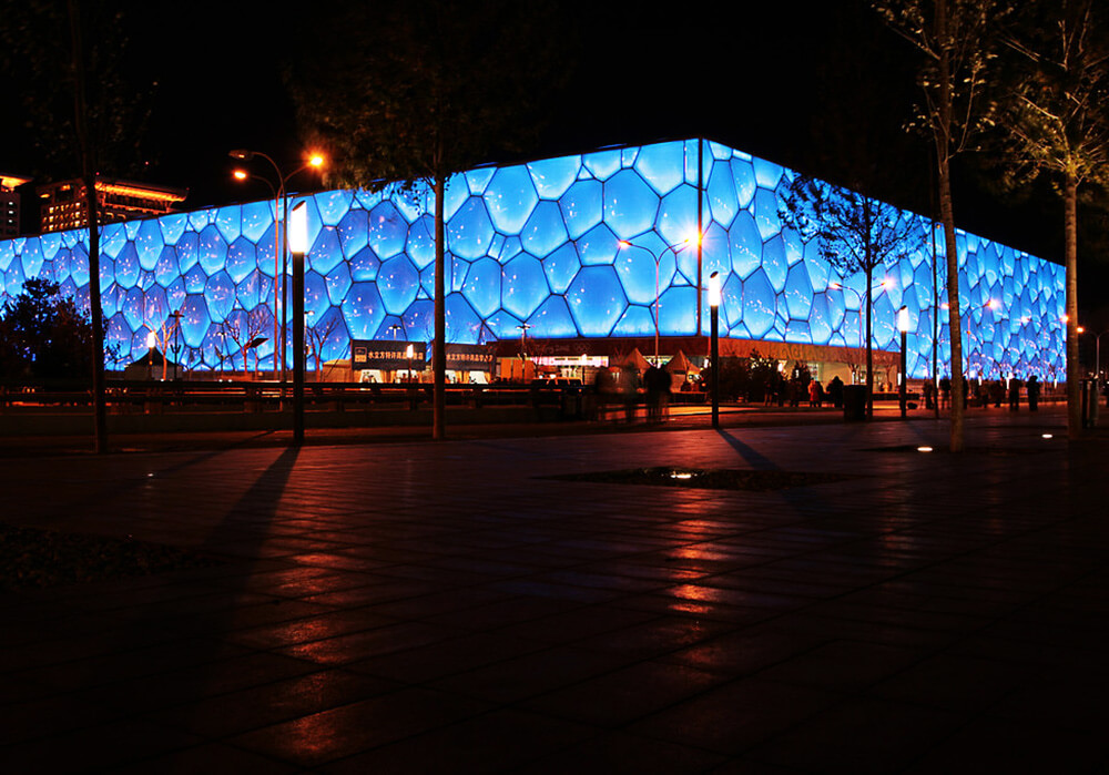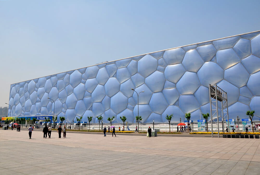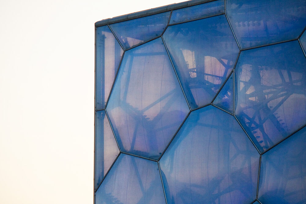 The Water Cube has been designed to perform like a greenhouse. High levels of natural daylight into the building are allowed and, as swimming pools require a lot of heating, harnesses the power of the sun to passively heat the building and pool water. Arup has estimated that this sustainable concept has the potential to reduce the energy consumption of the leisure pool hall by 30 per cent, equivalent to covering the entire roof in photovoltaic panels.