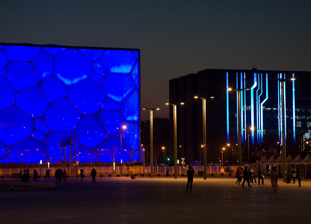 The square in Chinese culture and its symbolism, the natural structure of soap bubbles are combined into the concept and translated into architectural form. State-of-the-art technology is used in design and materials to create a building that is visually striking, energy efficient, and ecologically friendly.