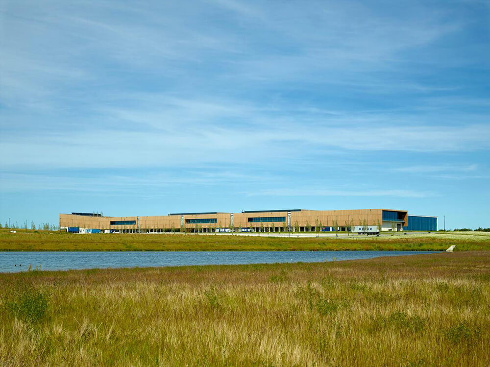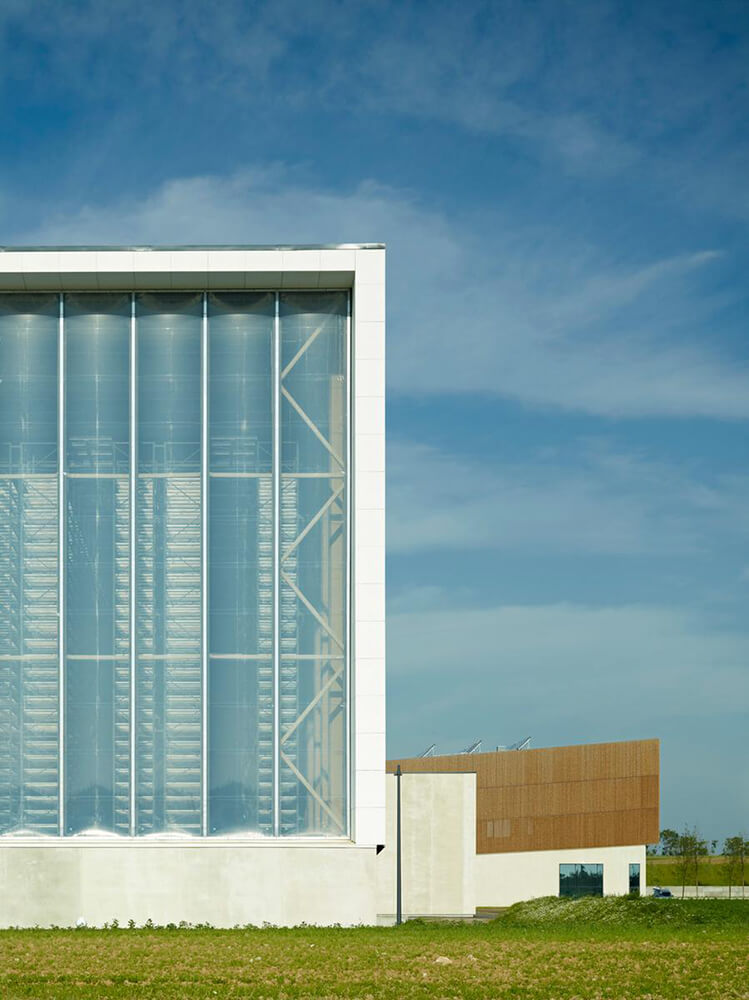 There has been a strong focus on sustainability in the planning, using the British environmental standard BREEAM Industrial and, as a first for this type of building, it is rated Energy class 1 according to Danish codes.Highly insulated envelope, passive solar design (north-oriented office sections, large shading overhangs, green courtyard etc.), FSC-certified pine slats cladding, use of renewable energy with biofuel + solar on-site energy supply, integrated landscaped rainwater management, large-scale green roofs, use of daylight, controlled electrical light and LED fixtures, translucent lightweight ETFE-foil facades, and specially developed state-of-the-art low-energy machine equipment (reducing consumption by 75% compared with standard sorting plants) are unique features.