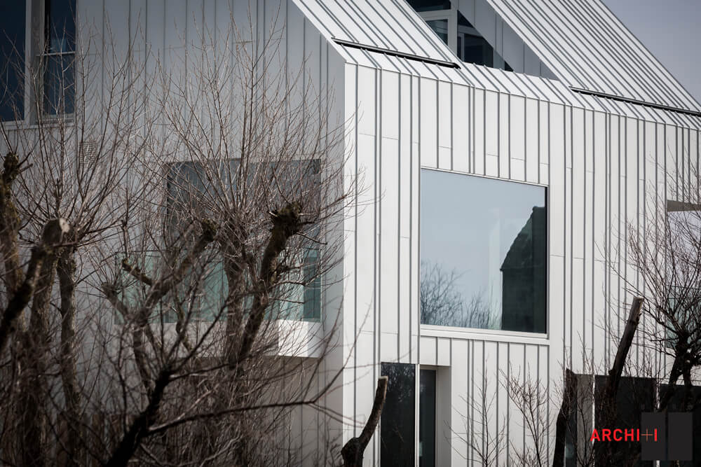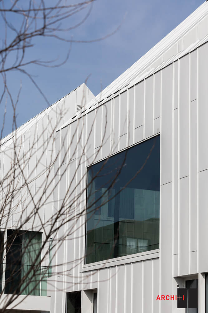 A uniform design was adopted for the façade and the roof to achieve a striking and distinctive architectural style. The preferred choice was white aluminium, as a contemporary application and interpretation of the white coastal architecture. The shell was constructed using a white aluminium standing seam system, which is ideal for use on the wall as well as the roof.