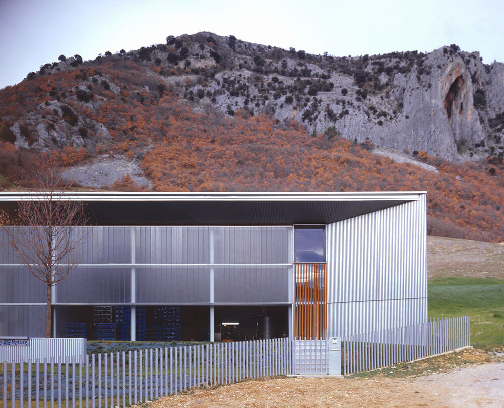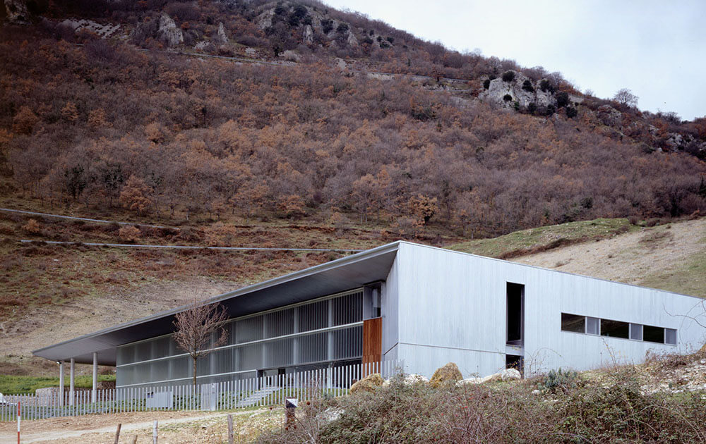 In an environment with one very special landscape component, the hillside that occupies and forms the plot and the nature of the new activity that is implanted, they want to make understand the building as a prolongation itself of the area where it is located, as an artificial wedge arisen from a privileged landscape, where the hillside transforms gradually in the cover of a luminous and clear space that shelters a well of captation of mineral water, a zone for its bottling, a store of complementary products and a small area of offices.