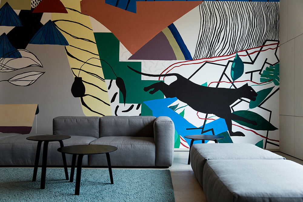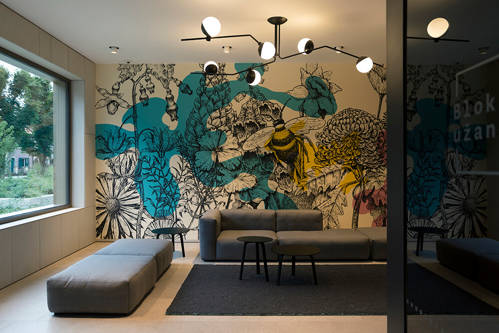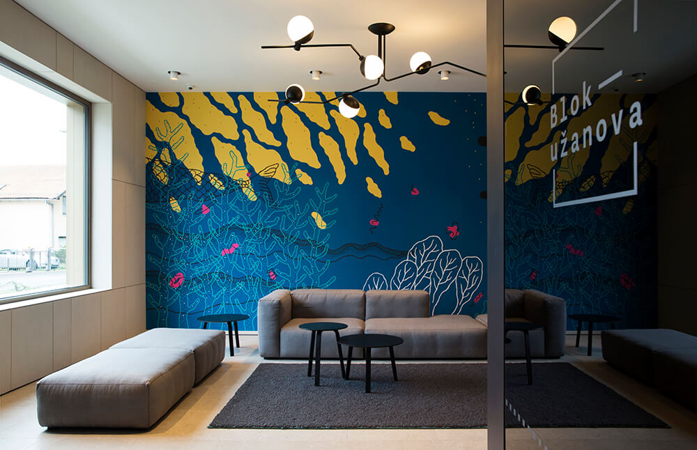 Artistic murals (lobby): ”Aquarium” – Ena Jurov, ”Animals escape into the city” – Jelena Bando, ”Vista” – Mario Kolarić, ”Meadow from a dream” – Miron Milić