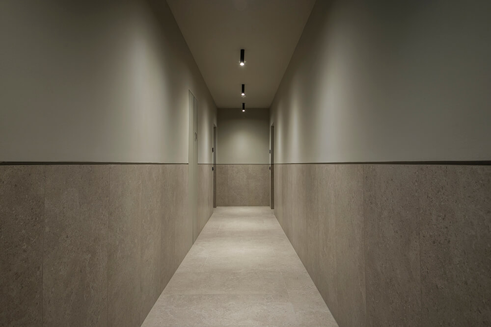 The project has additional specific features that offer a higher standard of living, apart from spacious apartments and large windows. The ground floor has commercial and hospitality amenities as public space, while the entrance lobbies for residents are separate and private. A mural done by a selected young Croatian artist decorates the walls of each of the entrance spaces, further enhancing the living experience. Underground, there are other service and technical facilities and storage units, as well as a garage for all of the residential units and commercial spaces.