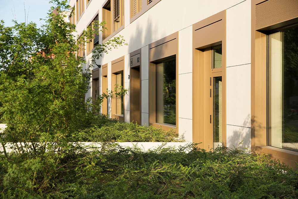 Flexible and adaptable apartment floor plans are allowed from a load-bearing façade and central structural cores with staircases. Their transformation and personalization is easy according to client ideas.