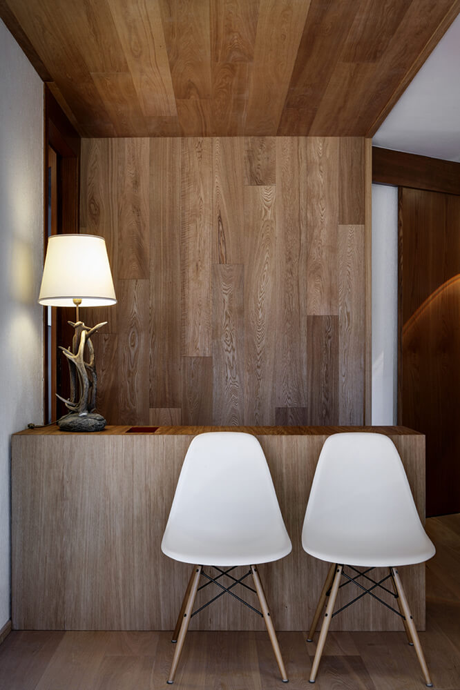 Instead, the project acts on the articulation of wood facings, that are expanded in their surfaces.