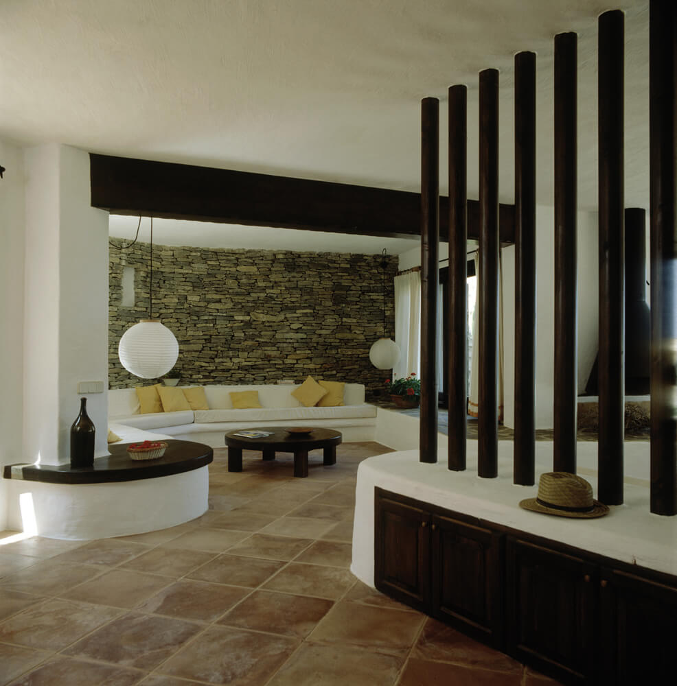 The main challenge of this commission was to construct a house in a very visually dominant spot in Cala Pregonda without modifying the charm and natural beauty of the landscape. This second residence for a big family had to pass unnoticed. Therefore the stonework was done with the same stone extracted from the site during the excavation. The house consists of three units. The central unit is dominated by a pre-existing tower where the kitchen, living room and dining room are. The second unit is where the bedrooms are and the third unit, in the higher level, is where the guest apartment is. The three units communicate through terraces, and stone stairs. This project was on the cover of Architectural Digest in the 1992 January issue dedicated to the Spanish Olympic year.