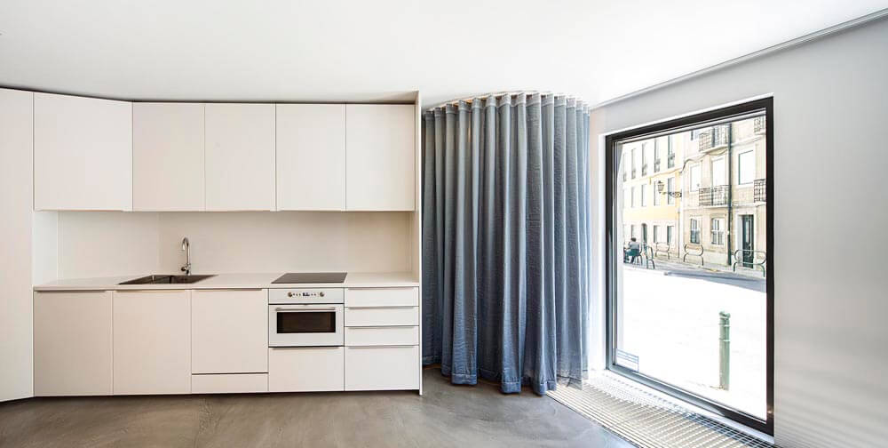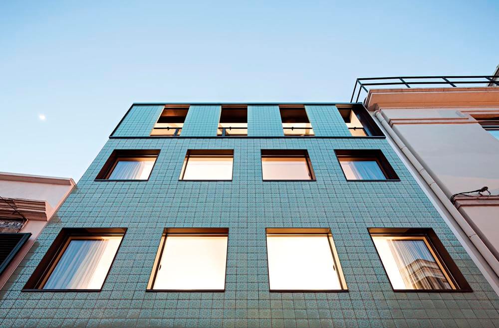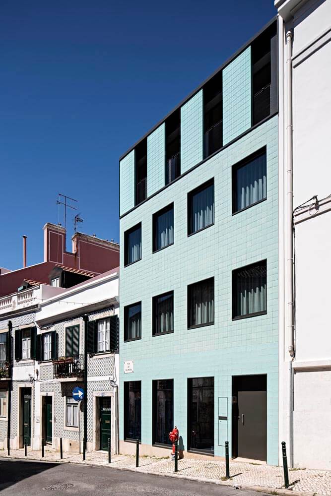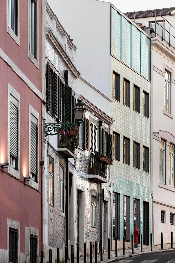 Hard as it would be to plan a typical construction site in such a small plot, we opted for a light steel construction system – LSF – which has an excellent thermal and acoustic performance. It is the first building in Lisbon made with this system.