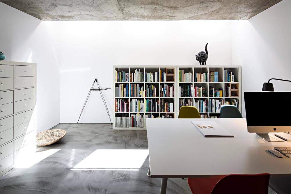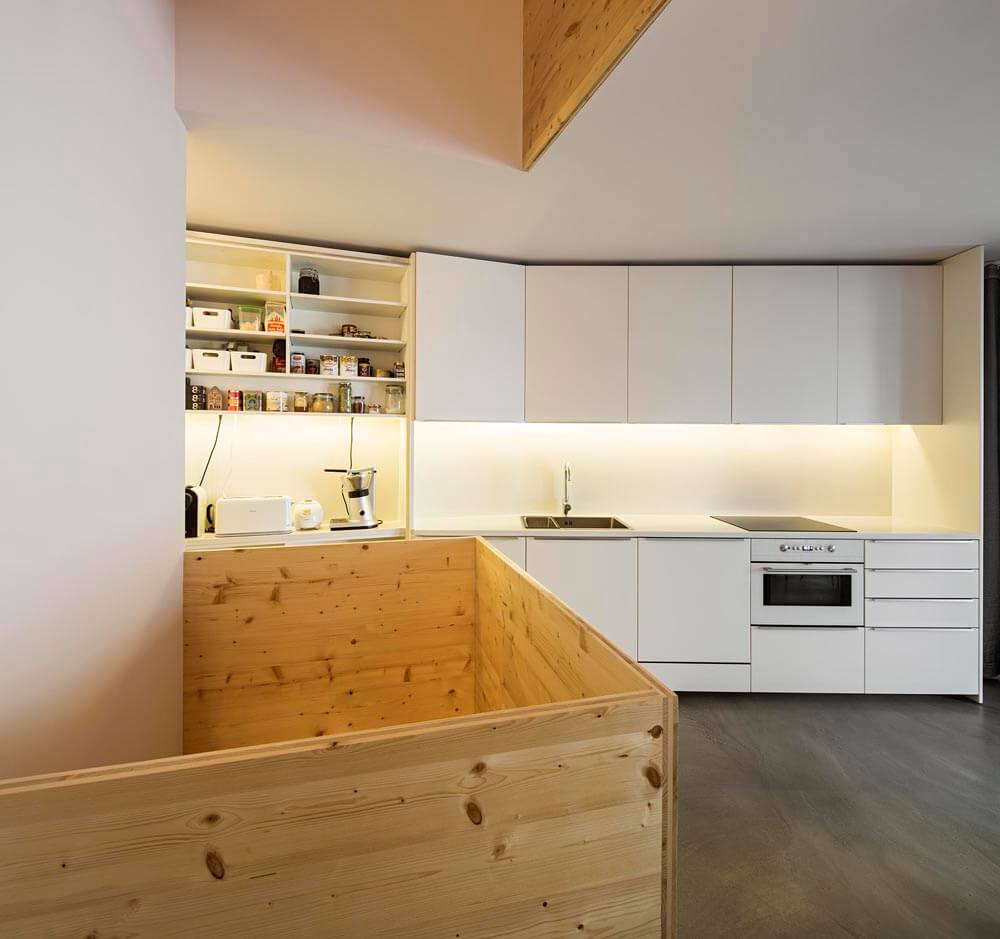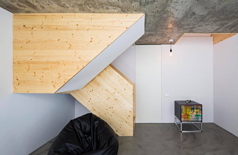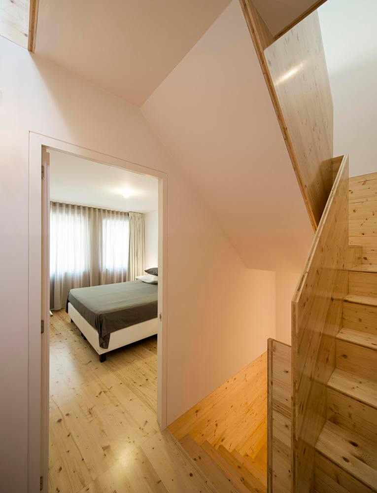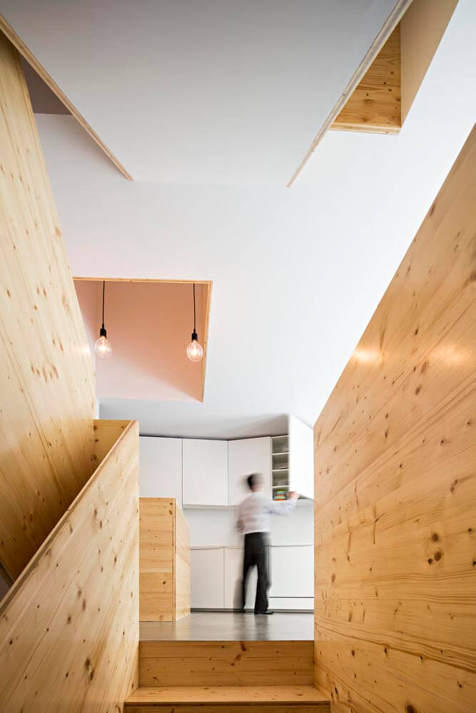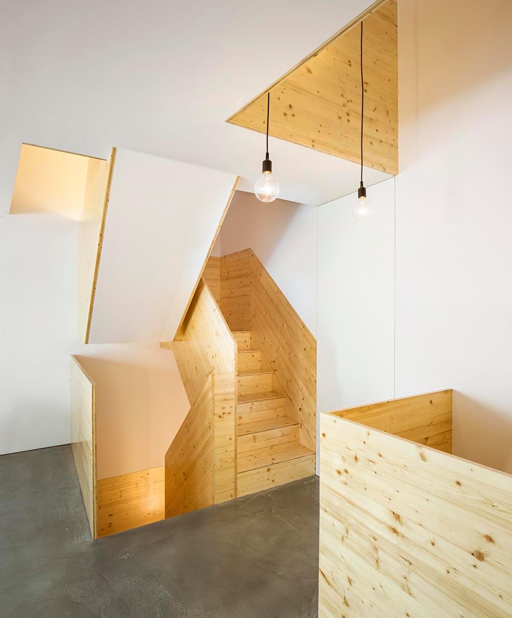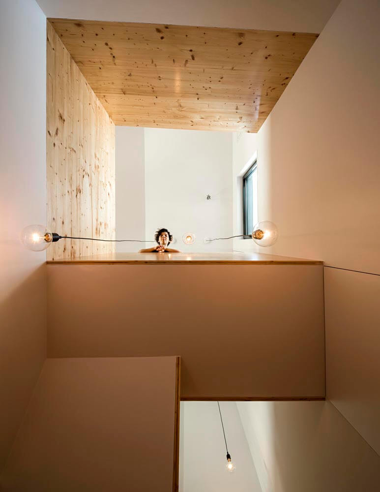 The exiguity of the plot has led us to a scheme where each floor has a different function and layout and all floors connect through a vertical atrium of variable geometry, providing a naturally-lit cadenced, progressive route. In addition to its spatial qualities, the atrium works as a thermal chimney for passive cooling during spring and summer and allows air renewal throughout the year.