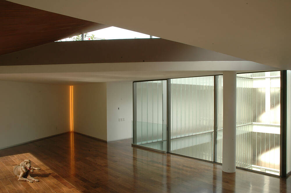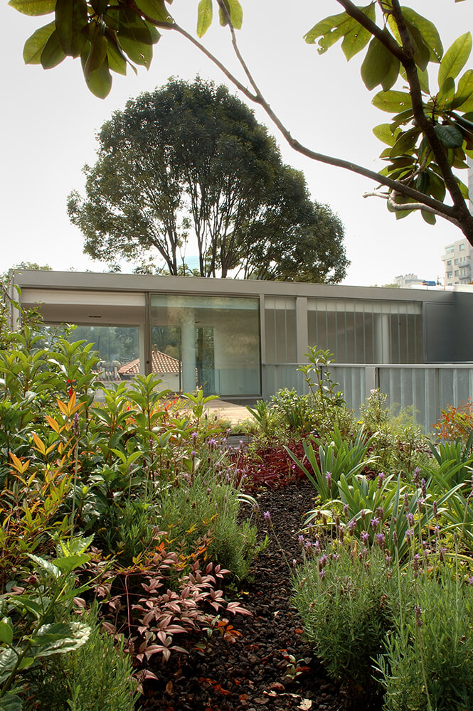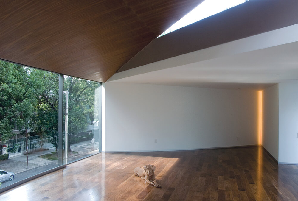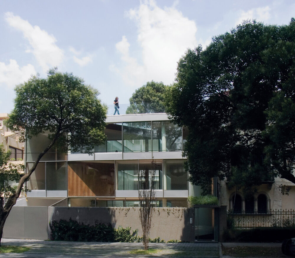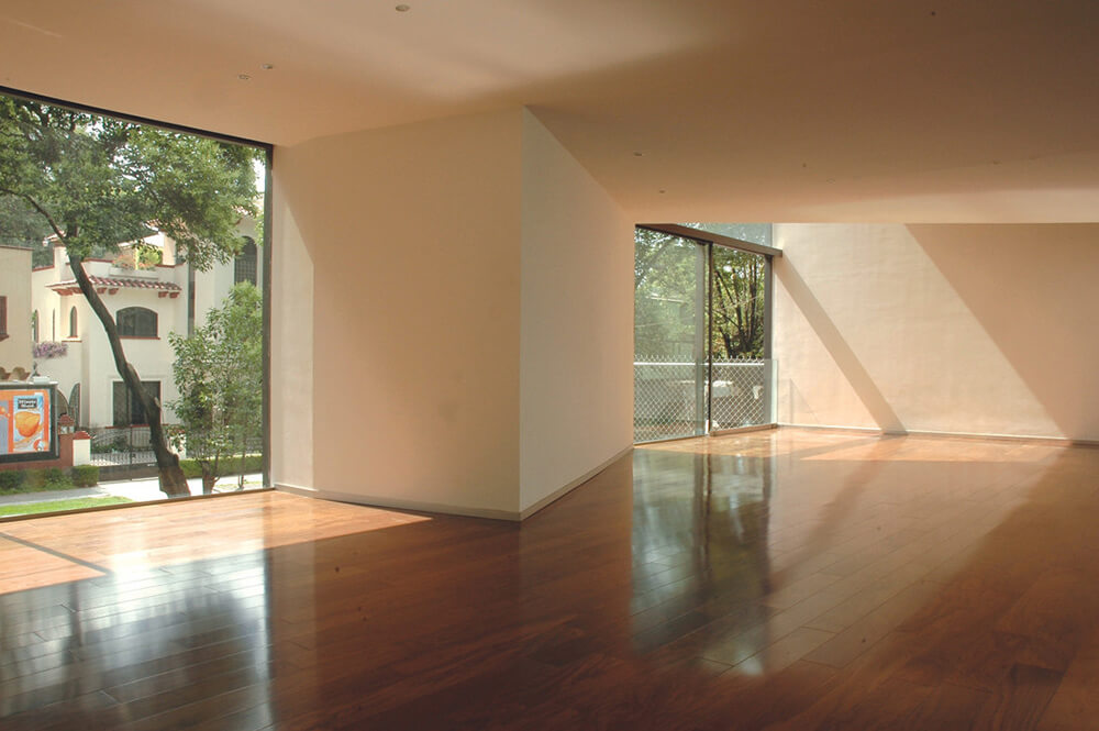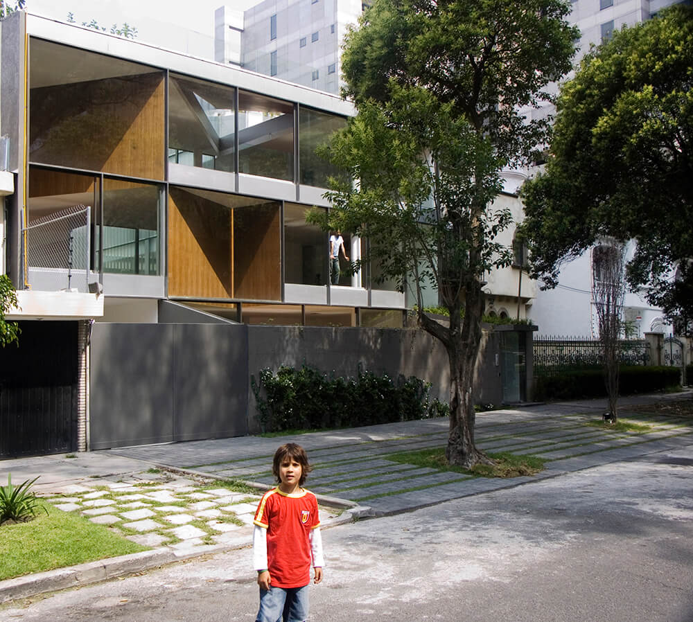 Located in a residential area of Mexico City called Polanco, this four-story building has three apartments organized around three gardens. The street setback creates the first garden, where public activities take place. The backyard area is private, looking out to a garden of ferns and a beautiful tree. The central garden gives way to an indoor view, a space to bring in light and walk freely around the apartment. To hide the view from the street, we created different triangular cuts along the three levels, providing double heights to the indoor space structured on the upper or lower floors, and sometimes going into another apartment. The distribution of the project groups the service areas along the sides of the backyard.