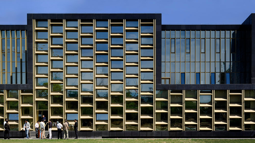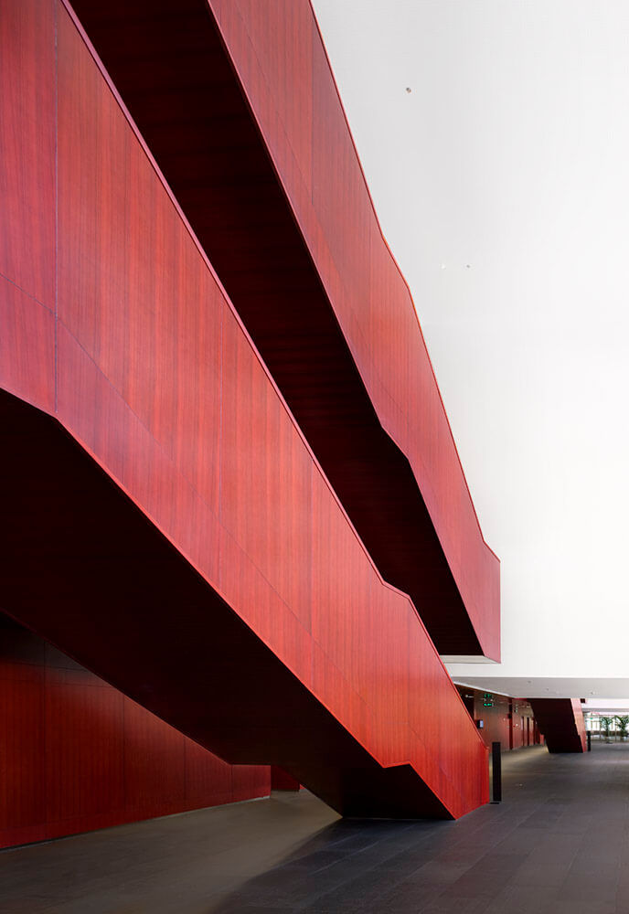 The traditional Chinese architecture and philosophy already fascinated us, and it has been the engine of our architectural ideas helping us to shape the project, and it is easy to recognize it in the election of the colours and materials as, mainly, in the spatial configuration of the building. This is the way the building represents CEIBS spirit of encounter between China and Europe.