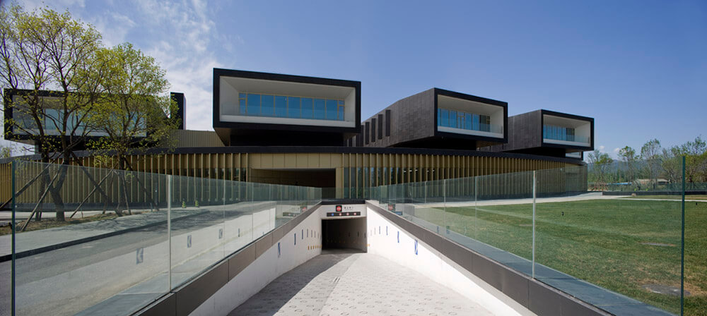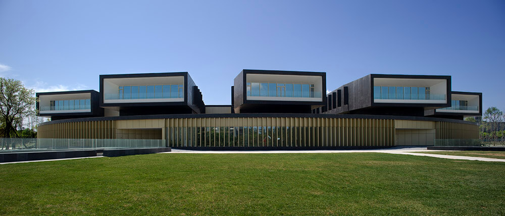 The new Campus occupies about 19.000m² in a three floors building and a basement floor in a plot 33.000m2 in the Zhong Guan Cun Science Park in Beijing. The project is conditioned by the teaching function, the Zhong Guan Cun Science Park master planning which proposes a series of compact buildings scattered in the forest as small islands in the ocean and finally by the client´s needs of building it in two phases and making it look as good and as finished also at the end of phase 1.