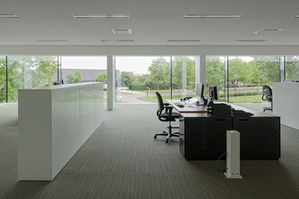 The municipality of Borsele in the Dutch province of Zeeland was founded in 1970 by the merging of 13 villages. Heinkenszand was assigned centre of this newly formed administrative unit and a new town hall was built for the 25.000 inhabitants. More than 30 years after the opening, the building was in need of rehabilitation. On the one hand, the façade as well as the roof weren’t fully waterproof anymore. Furthermore, the building had to undergo an asbestos abatement to adapt to modern building standards. On the other hand the interior of the building had to be renovated in order to create a flexible and modern office environment. The building climate had to be improved in order to reduce energy loss.