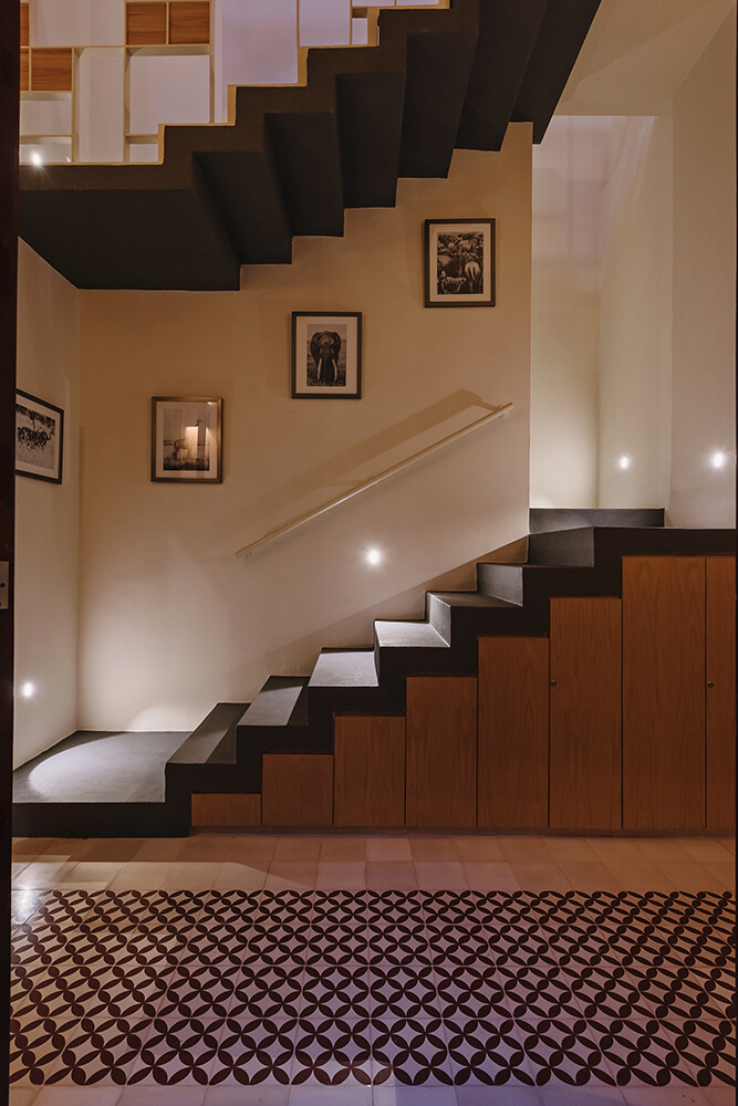 For air flow and illumination in a natural way, it was inserted a central patio with stone covered walls, same as the ones in the living room and swimming pool patio giving a continuity and amplitude sensation of the spaces; there were settled a series of gardens being the central patio that gives order to the household. We also included some additional door openings that allow natural illumination in the building and also create a symmetrical composition in the patio’s interior facade.
