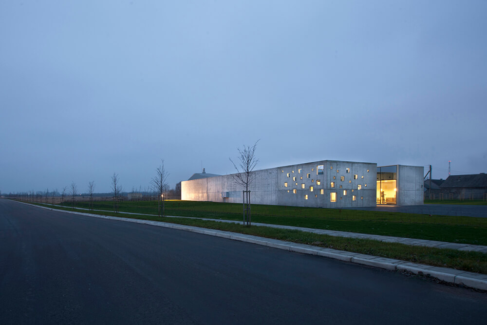 Building site- industrial town Kėdainiai with 31000 inhabitants in the center of Lithuania. The area for the building was chosen in industrial park. New building is surrounded by a chaotic, unaesthetical industry: sugar mills, fertilizer factories with smoky chimneys. So the surroundings don’t even have a smell of sacred place.