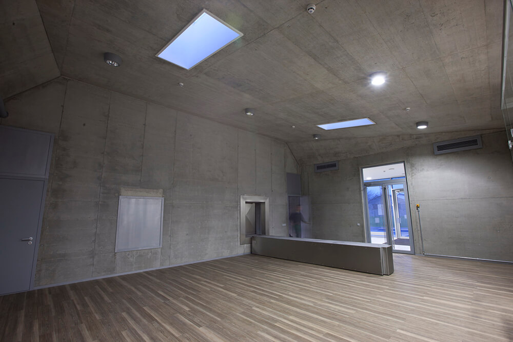Three levels of modern cremation and exhaust air cleaning equipment, conforming to the strictest environments requirements was produced by known German firm IFZW. The building is fully equipped for two line cremation.