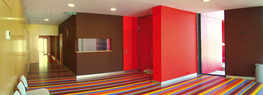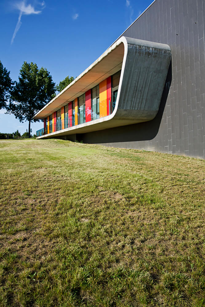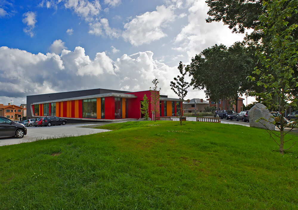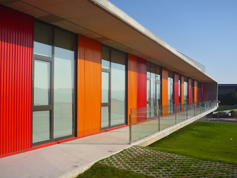 The plot’s topography, with a slight southwards slope, enables the construction of a semi-basement; the perfect space to install the facilities rooms and the storage location and connected to the rest of the building through a forklift. The interior layout of the edifice was designed to avoid mixing internal routes for the staff with those for the centre users, what enhances the operational efficiency of the school.