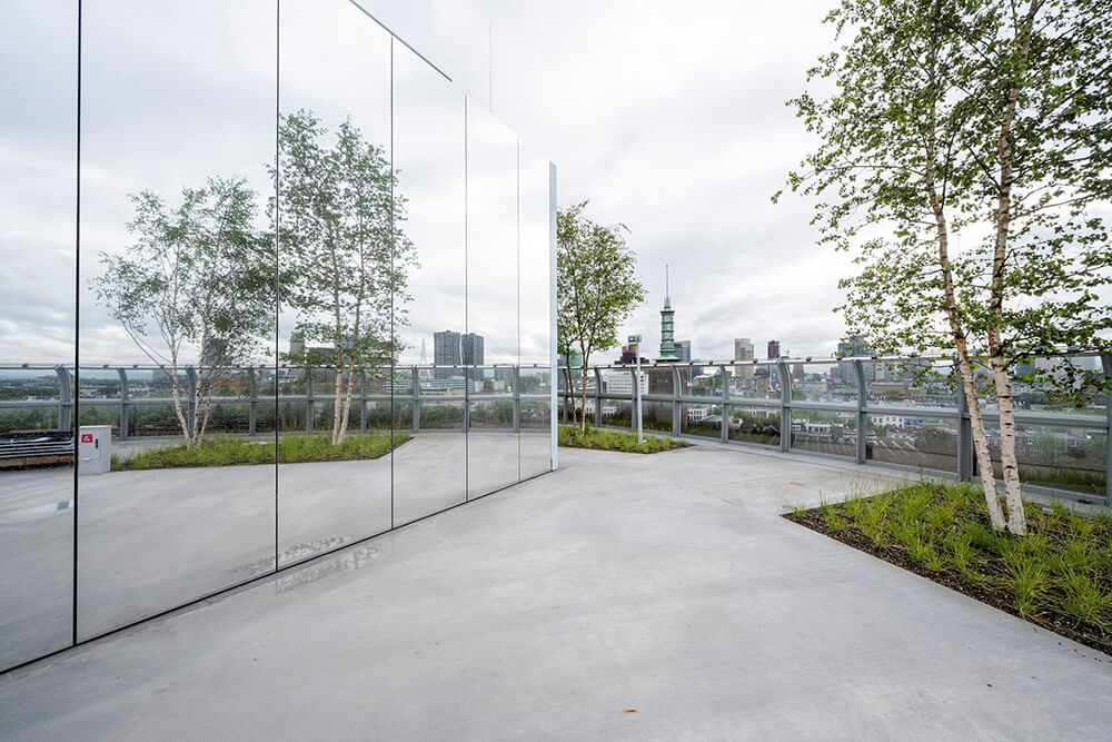 Art is displayed throughout the building, beginning in the ground floor lobby and continuing along the entire route through the building, extending even to the rooftop restaurant. Outside this restaurant, a rooftop forest at a height of 115 feet will provide another public attraction, accessible via an express elevator from the ground floor, and populated by 75 multi-stemmed birch trees standing several meters tall. The rooftop offers visitors breathtaking vistas across the city of Rotterdam.