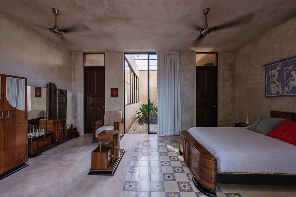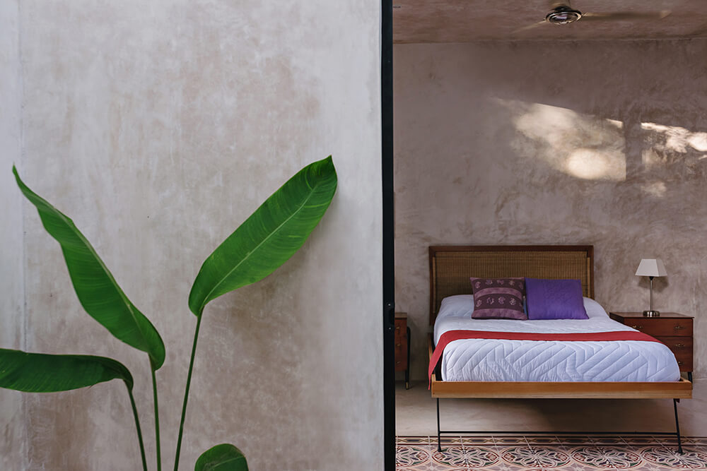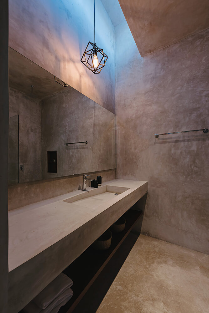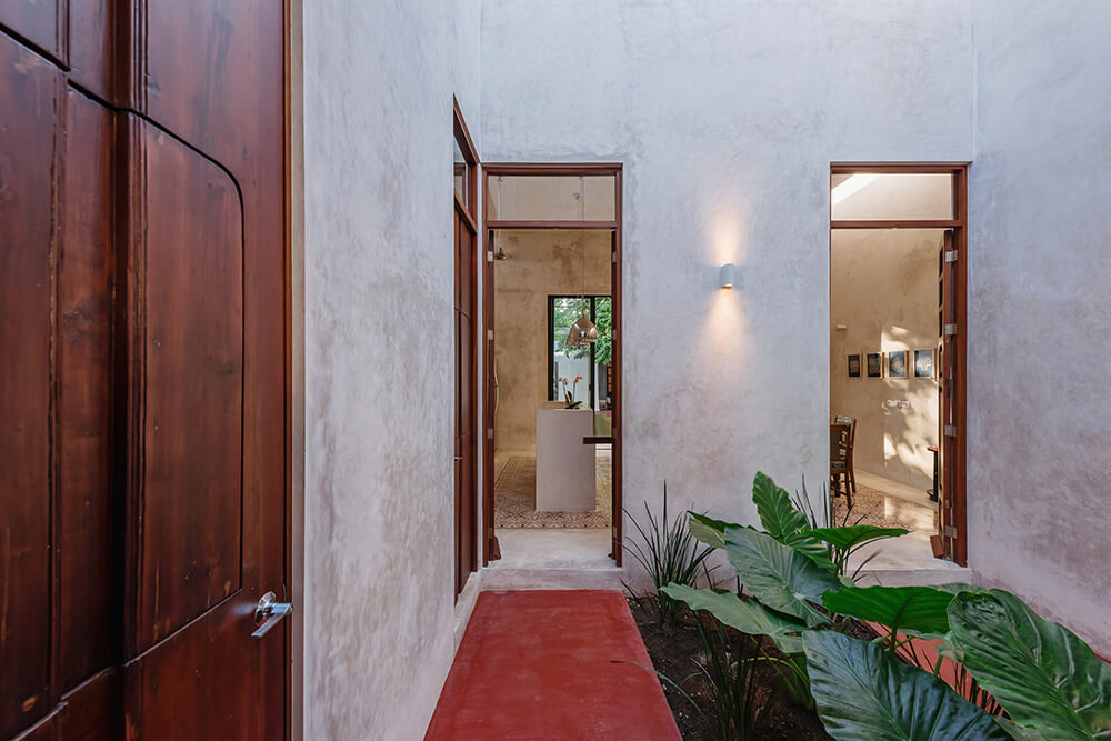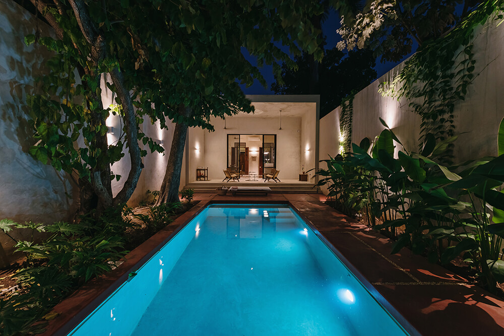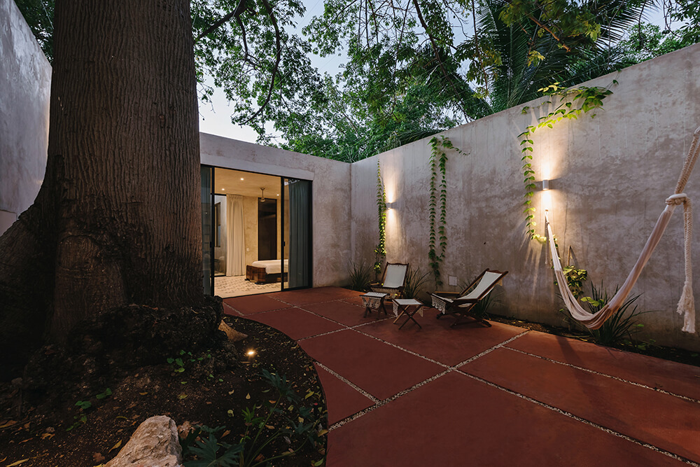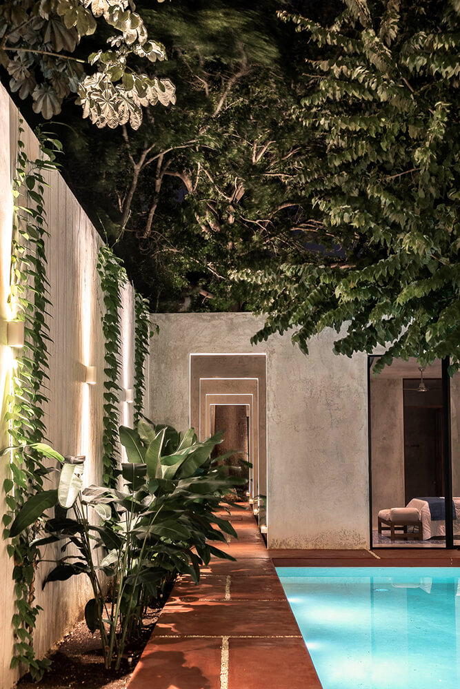 A Ramón tree (brosinum alicastrum) and a Pixoy (guazuma ulmifolia) configurate the exterior space of the terrace with the swimming pool. An enormous Ceiba tree, because of it size, looks like the protective mother of the household within the proportion of the site.