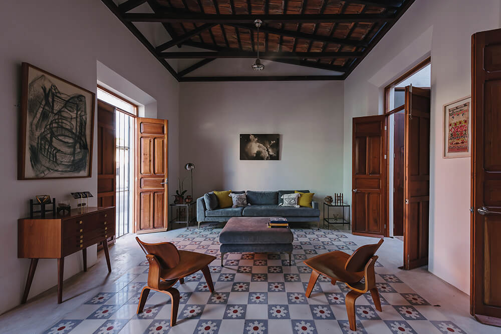 The facade rehabilitation that protects the roof suggests the principal entrance, where there are the living room and lobby of the house with the intention of highlighting the main character of the original construction, and embrace an adequate use of our project. A recess before arriving to the common use areas conformed by a small central garden the helps the service spaces become unnoticed.