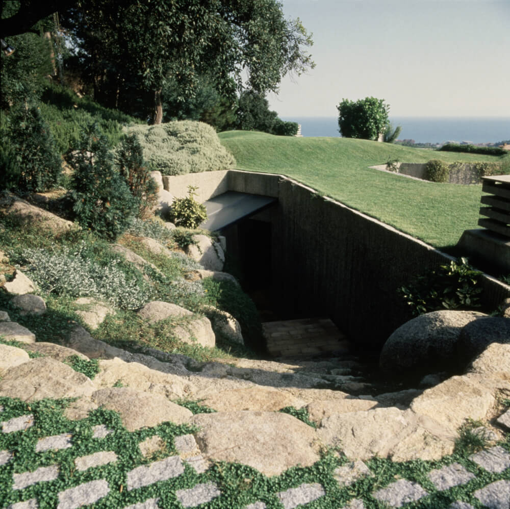This residential semi-buried house, was one of Javier Barba’s first projects and without a doubt his first bioclimatic project. The steep hill and the proximity of a busy street behind the lot, seamed at first site problematic but in fact this issues became opportunities to develop the architects’ convictions and he decided to bury the house following the mountain’s hill. That is how the entrance to the house became what seems the access to a cave at the bottom of which natural light floods the main living room. The floor plan is elongated and oriented towards the South so that all the rooms have natural light, a passive air circulation and the best views of the sea and the mountain. This project has been studied by the Project Monitor of the European Commission in 1989 and at the George Wright Forum as an example of efficient sustainable architecture, respectful and integrated in nature.