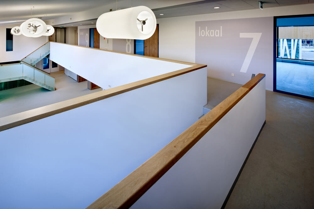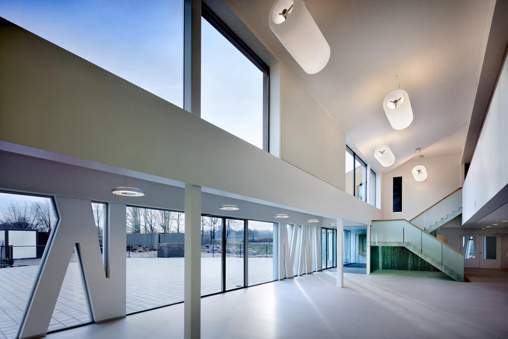 Sustainability plays a key role in the project. Besides an optimal internal climate, future-proof materialization and spatial logistics, it has also been designed with the newest sustainable installation technologies. The project Bloemershof is the first building in the Netherlands where concrete core activation by means of air is applied, the so-called “Concretecool” system. It uses the naturally good accumulating qualities of concrete to realise a school with the highest ventilation and cooling standards in a sustainable way. The roof surfaces of the school are installed with a solar system by means of photovoltaic cells and a so-called daylight regulation system has also been installed, reducing the costs of energy usage to a minimum.