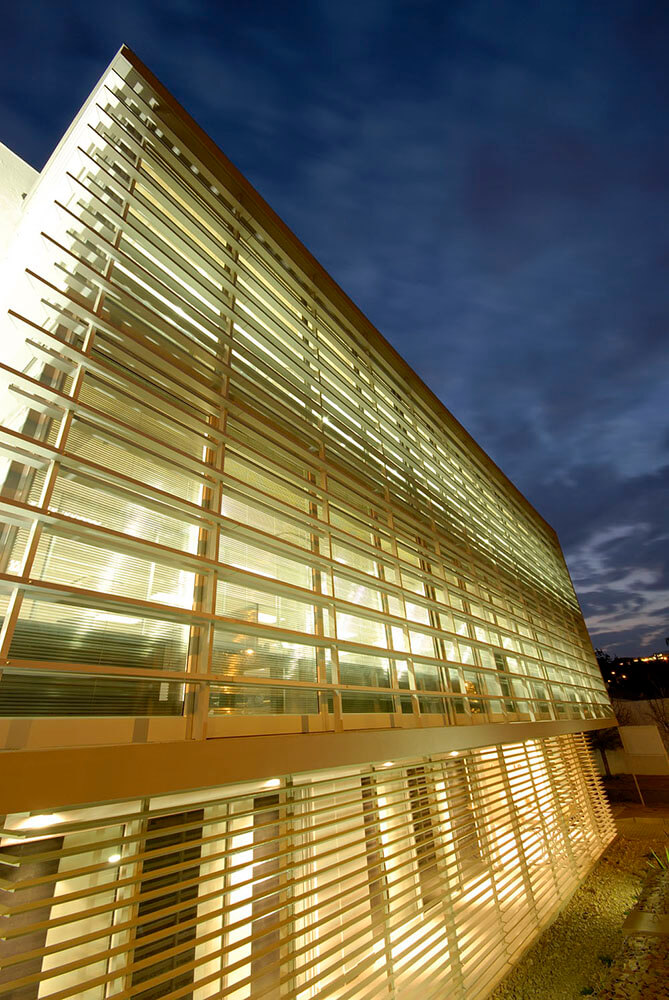 As a building that represents an innovative, unconventional, and rather exceptional company, the new Namibian head office for Ernst & Young Chartered Accountants has been conceived to give expression to these qualities in a manner that challenges traditional relationships between culture, environment, structure and space, while accommodating the organization’s progressive working methods. Every effort was made to avoid a stereotypical office solution and to resolve the brief in such a way as to announce the EY identity within the Windhoek urban environment with aplomb and eloquence.