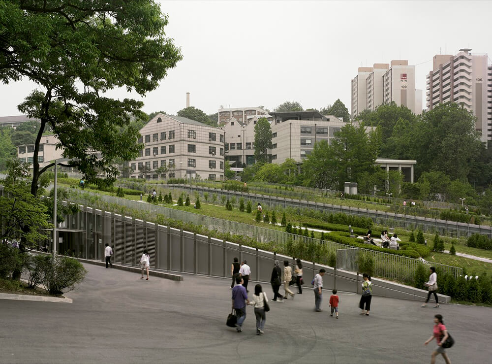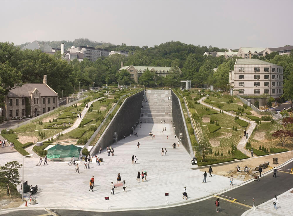 Many things at once synthesize the Sports Strip, like the Valley. The Ewha campus found a new gateway, a place for daily sports activities, a grounds for the special yearly festivals and celebrations, and an area which truly brings together the university and the city. Most importantly, it can be seen as a place for all, animated all year long.