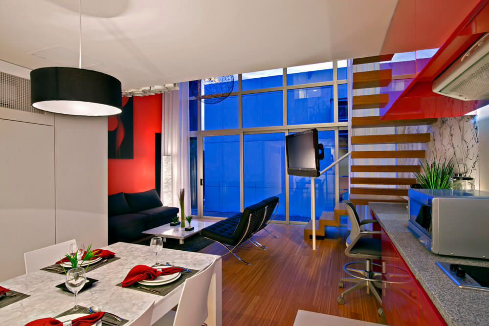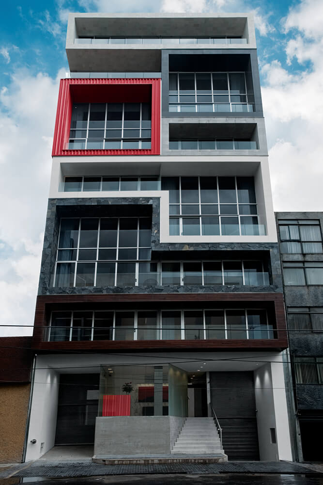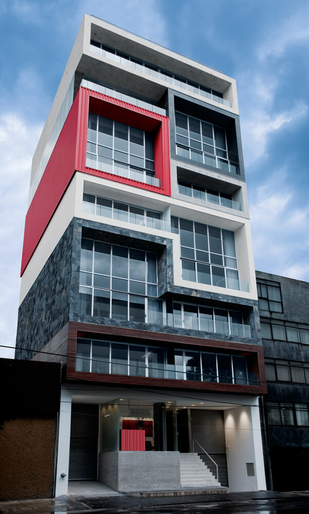 A client contacted the architects to design a hotel for corporate suites in Napoles, a residential neighborhood in Mexico City that has been rapidly converting to office use over the past few years. The plot was located across the street from the convention center of the World Trade Center, by far the busiest office building in the city. The suites were intended to accommodate businesspeople visiting the WTC and the year round expositions.