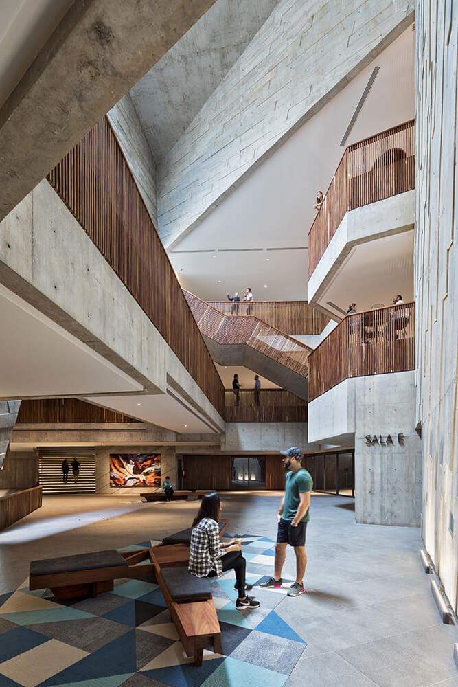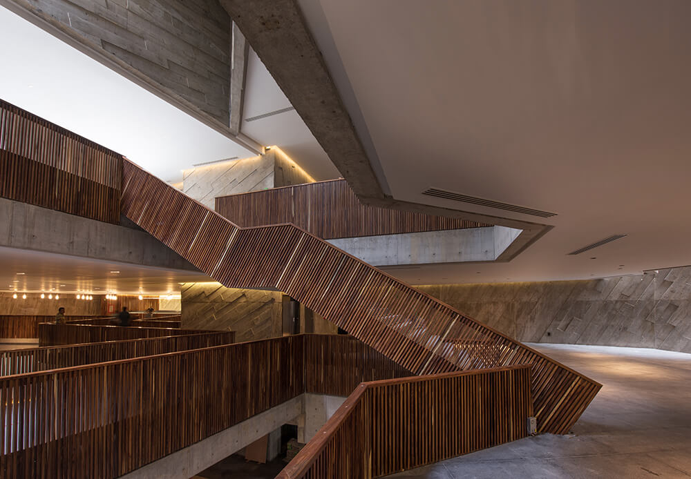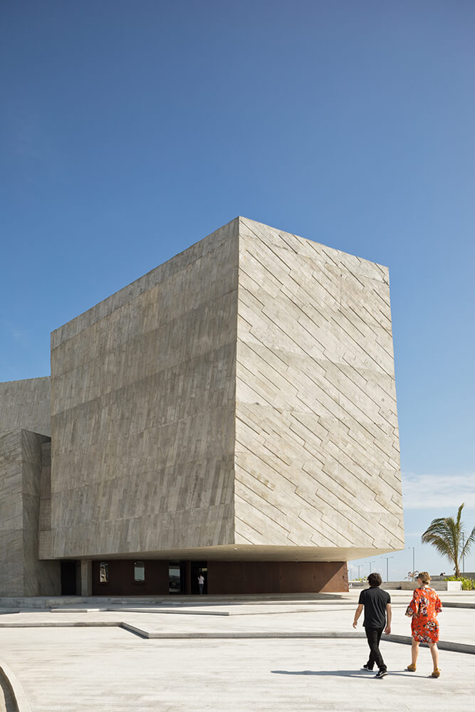 The Foro Boca’s location is intended to articulate the dynamics of the central part of the city with the coastal avenue, and has the goal of functioning as an urban detonator capable of inciting modernity in the area. The forum itself is a tool that has permitted the reconstruction and renovation of the infrastructure and urban image of this part of the city. The building appropriates the timeless expression of the concrete cubes formed by ripraps in the breakwater, assimilating them as its origin and re-interpreting them in a building made of apparent concrete, forming various areas of volume that contain the concert hall.