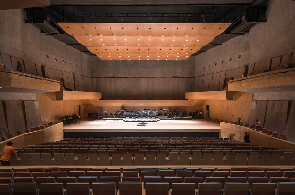 The architectural program considers a concert hall for classical, traditional and popular music for an audience of 966, also having the possibility of presenting shows involving dance and theater, as well as cinema. Additionally, the forum will have a rehearsal hall that can also serve for camera concerts, floor theater plays, cinema and contemporary dance presentations. The hall can hold 150 spectators.