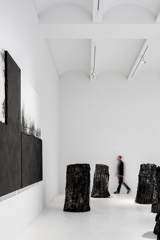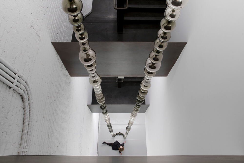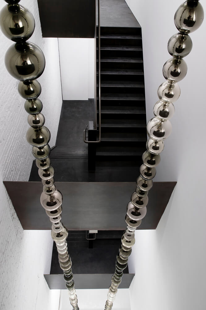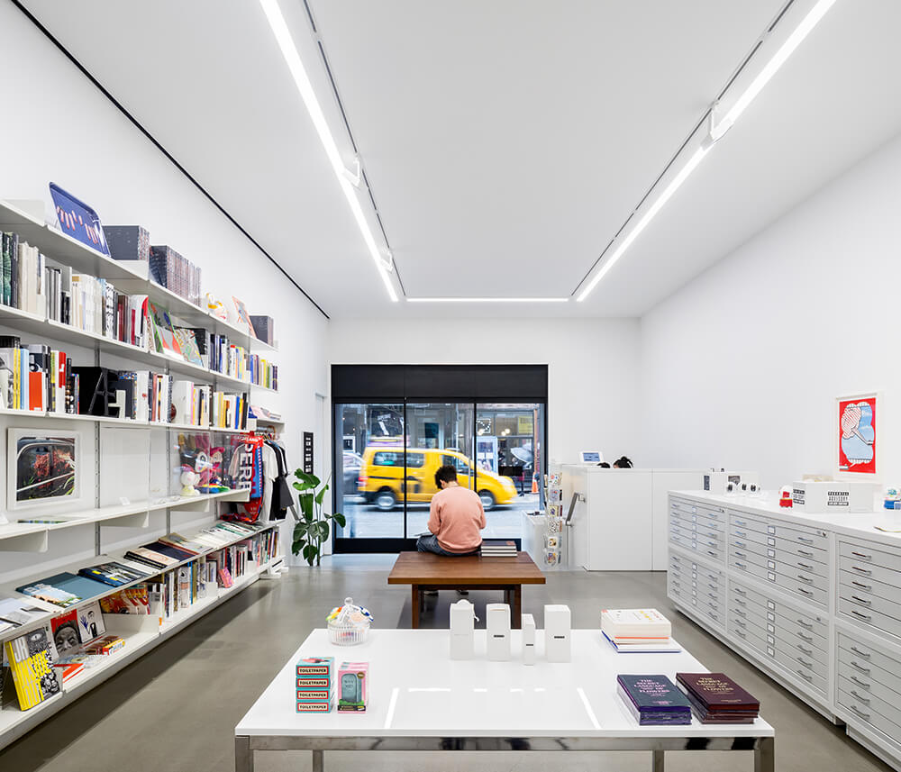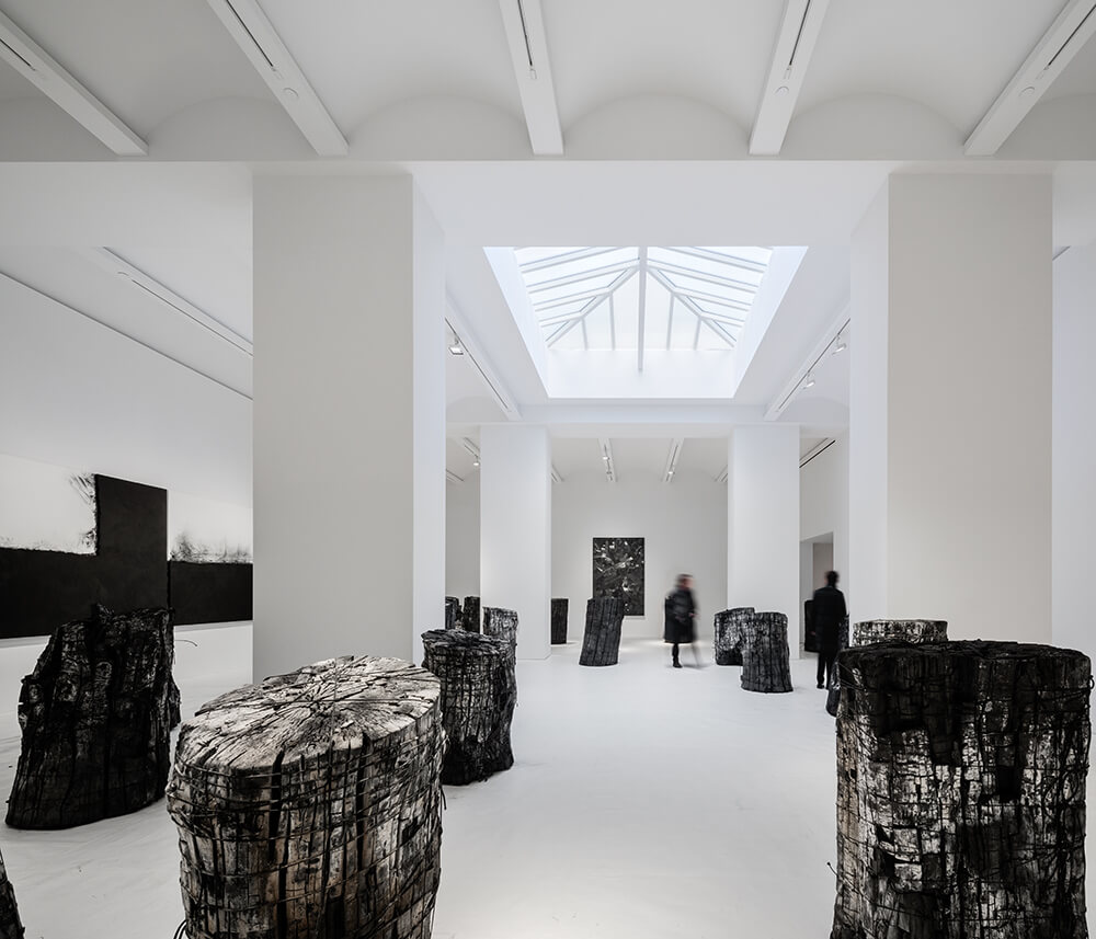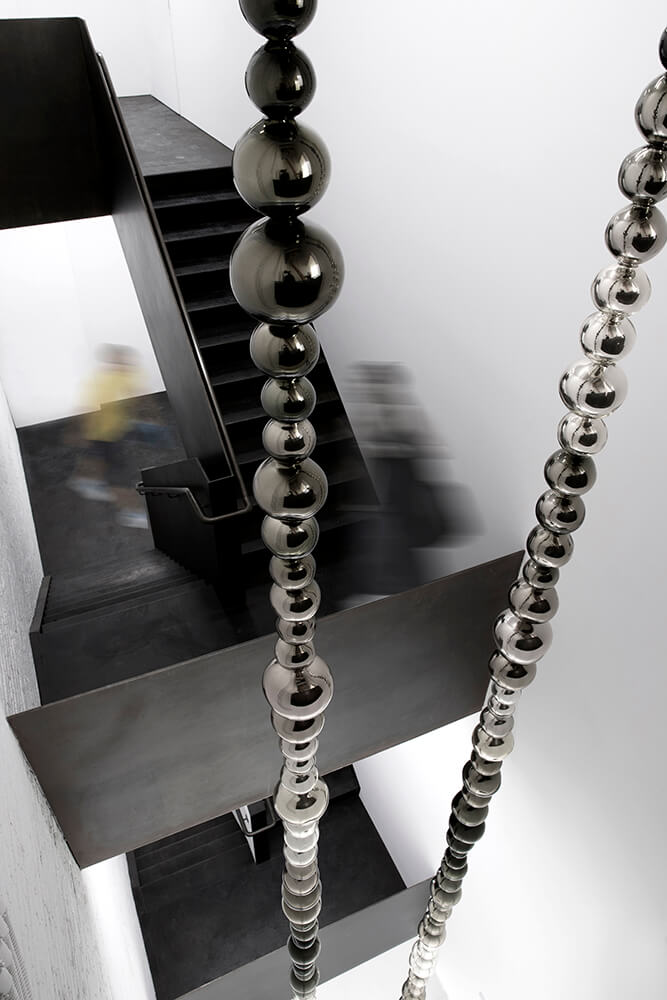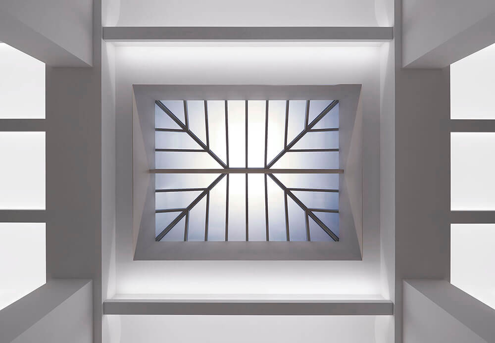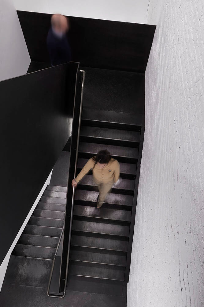 There are five exhibition spaces, and more than 20,000sf of public space. A dedicated stair built from half-inch blackened steel plate provides continuity and circulation and features a three-story atrium for sculpture display. A bookstore on the ground floor addresses the street and engages different markets than a typical art gallery, while a rooftop garden is used for events.