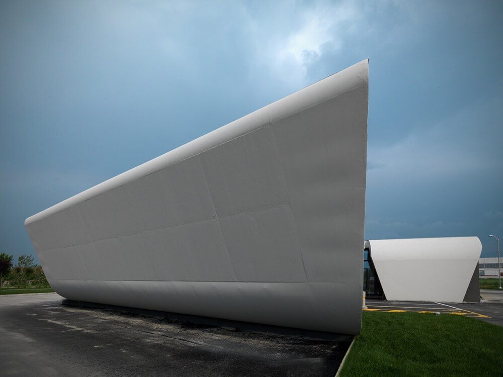 The architecture of the service station, as usually conceived as a mere support function, thus acquires a shape.