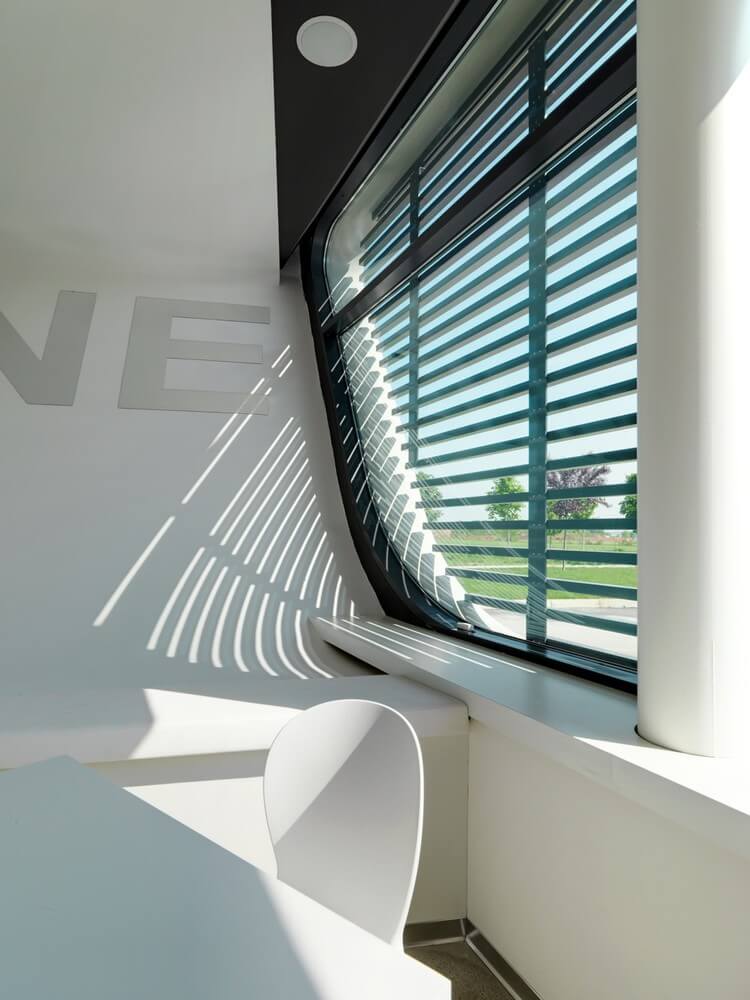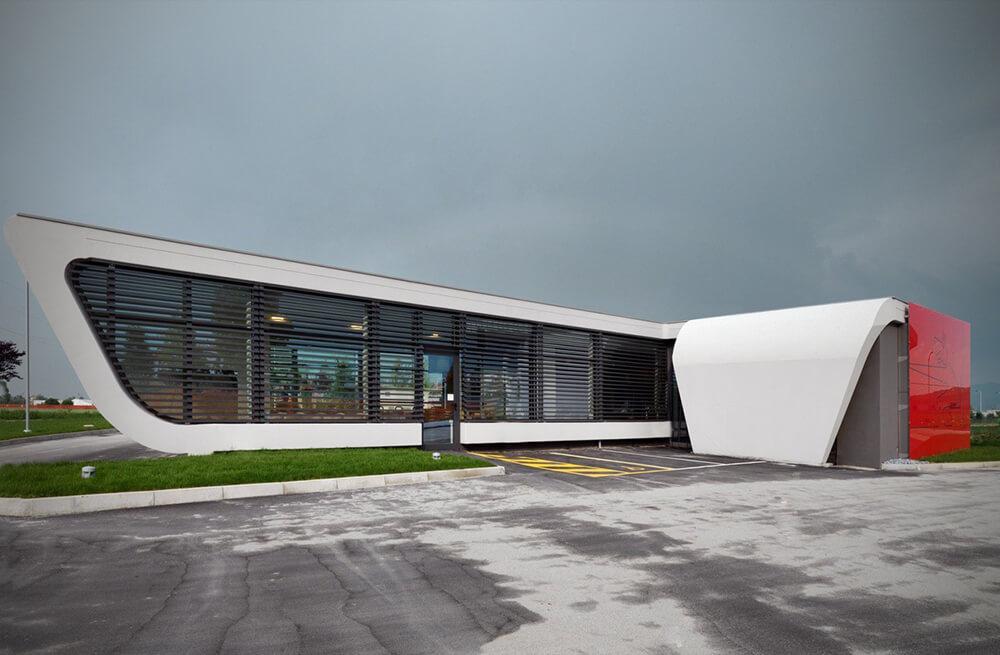 Are distributed within the office manager and a self-service, separate bathrooms from the block in central position. On the rear elevation red steel block is detached from the body and a wolf howling, illuminated at night, draws attention to the urgent needs.